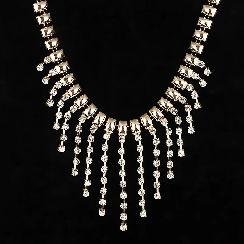 Exaggerated Shiny Rhinestone Tassels Chain Choker Necklaces Wild Geometric Clavicle Collier Femme 2021