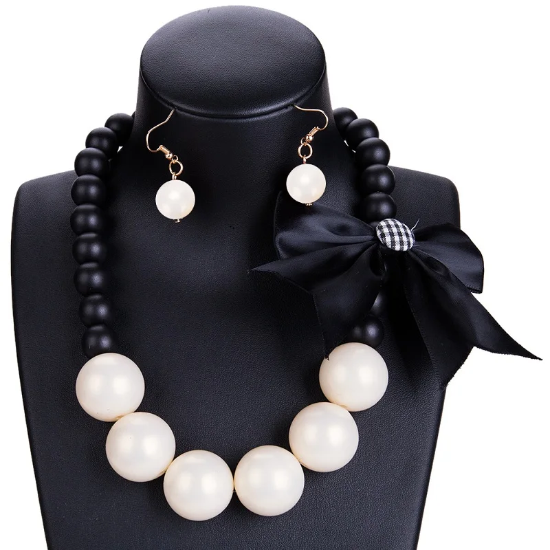 Find Me Brand Big Beads Collar Choker Necklace Boho Bow Resin Maxi Statement Necklace For Women Jewelry