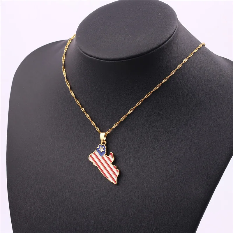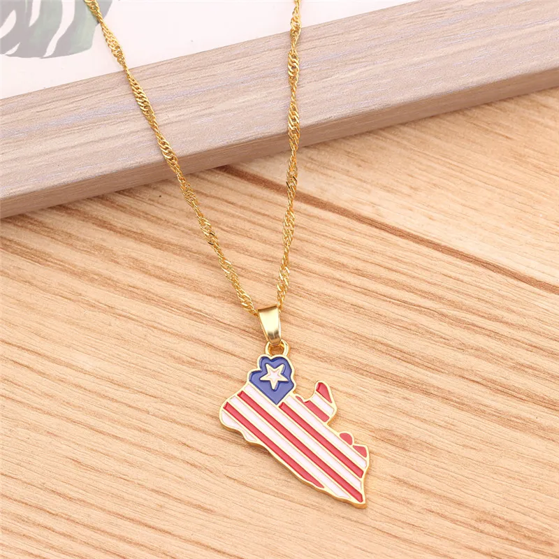 Flag Map Necklace Guinea Ghana Liberia Sonya Sea Floor Jamaica Africa Map Necklace For Man Women Collar Jewelry Gifts
