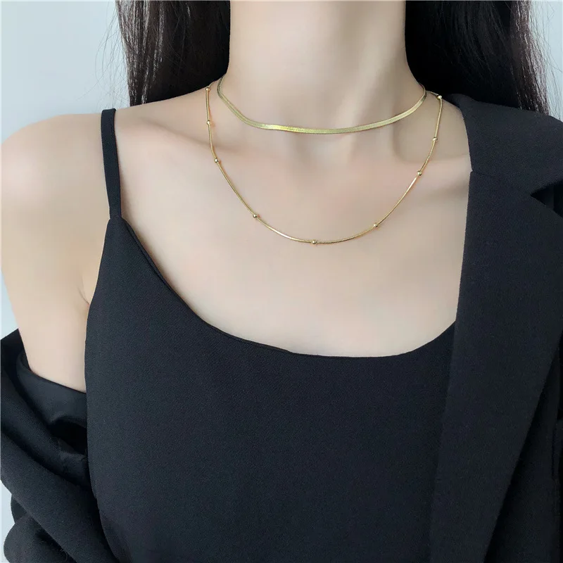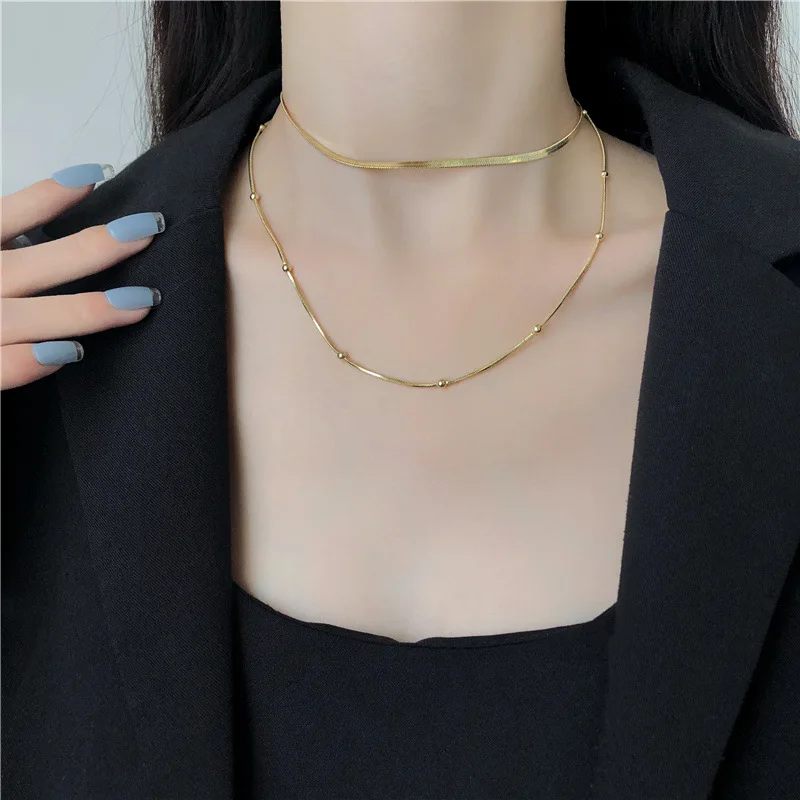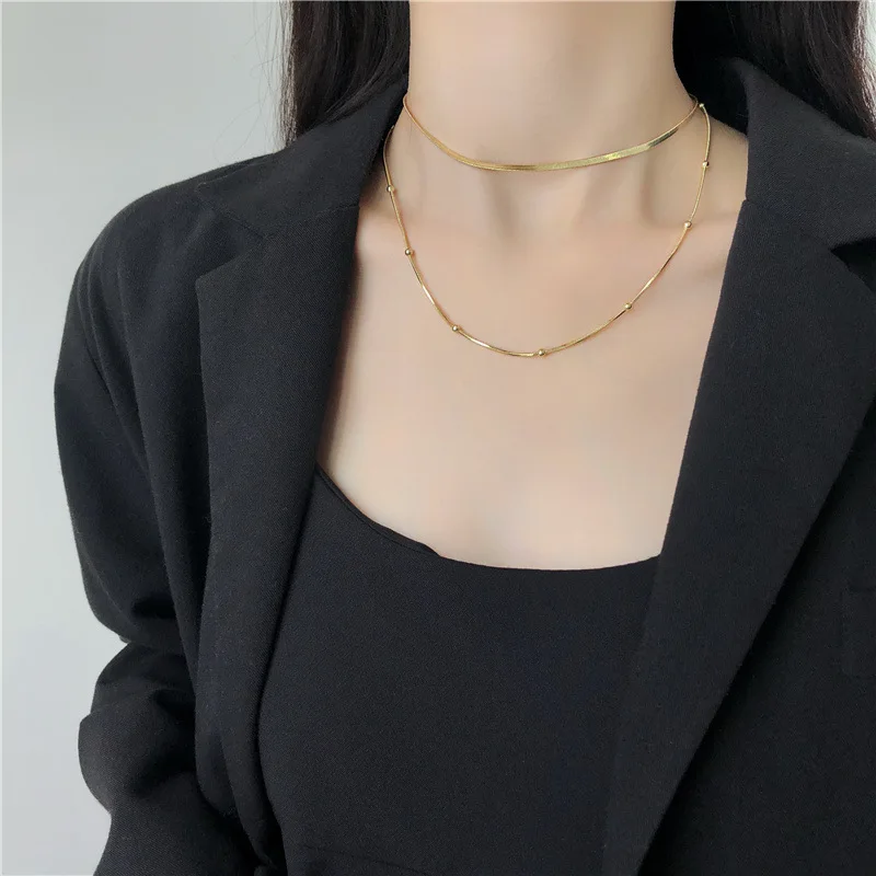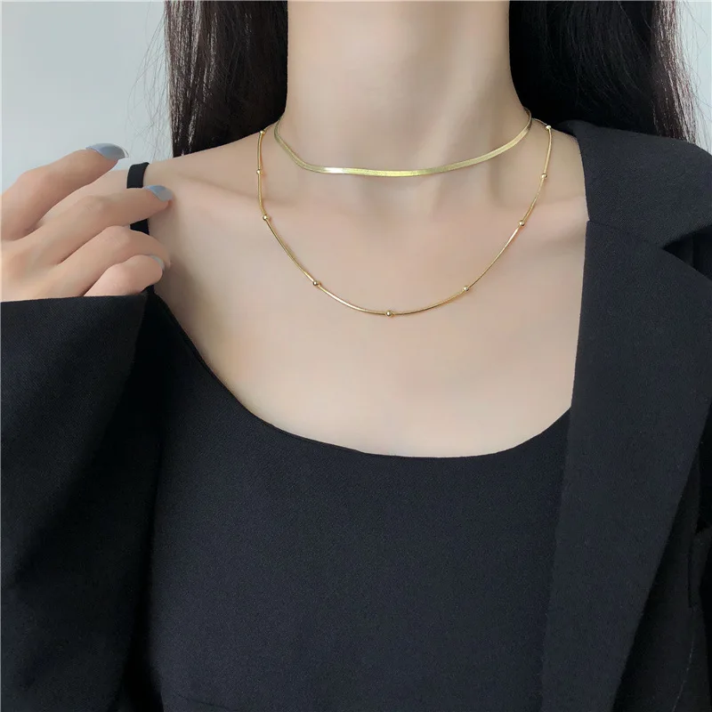 Flat cold wind snake chain necklace double contracted short chain chain of clavicle female temperament of ins small design