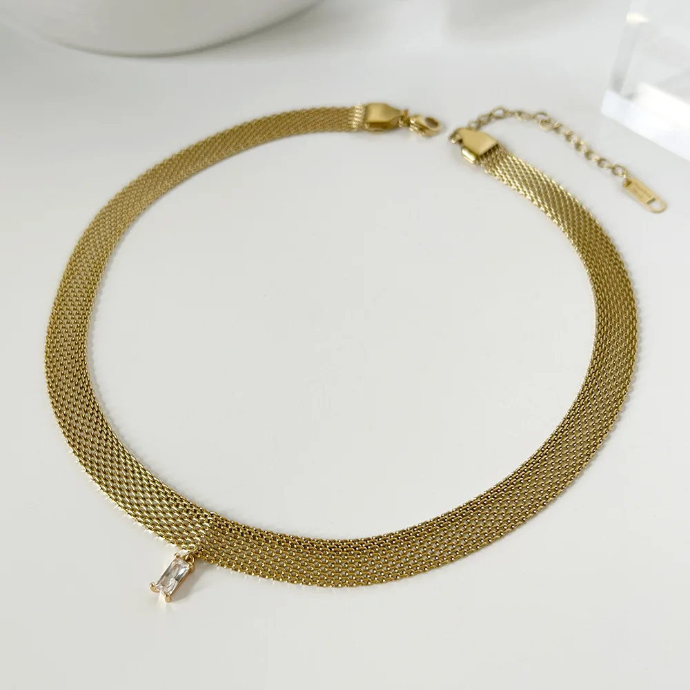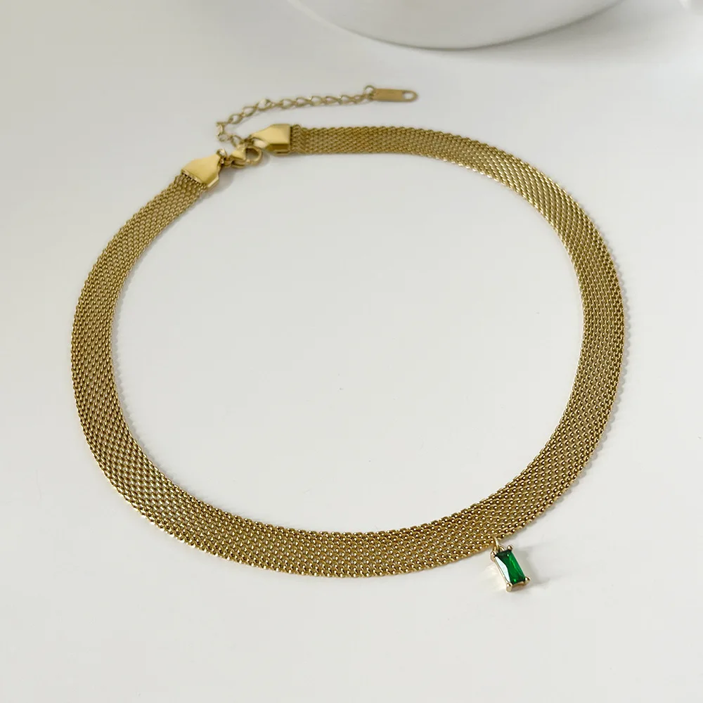 Flat mesh choker necklace with colored zirconia stone stainless steel necklace 2021 minimalism dainty jewelry summery jewelry