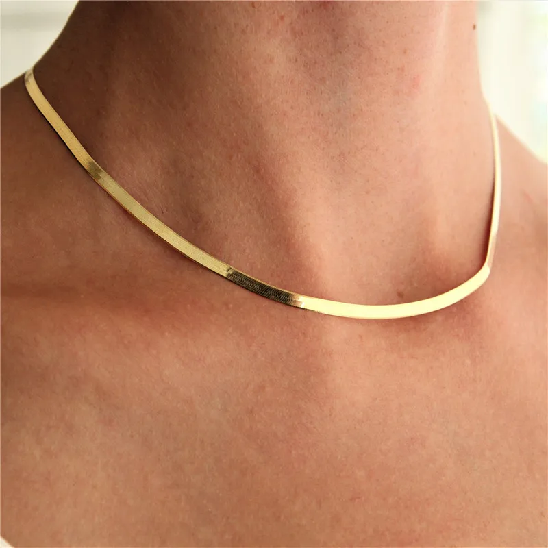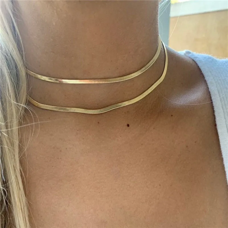 Flat Snake Bone Chain Ladies Necklace Simple Blade Short Clavicle Chain For Women Gift
