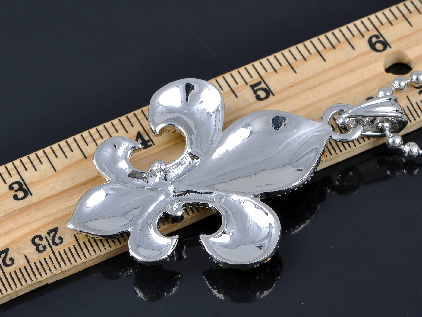 Fleur De Lis Peridot Green Rhinestone Silvery Chain Pendant Necklace Jewelry For Women