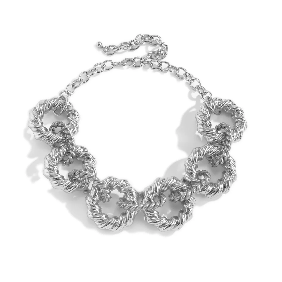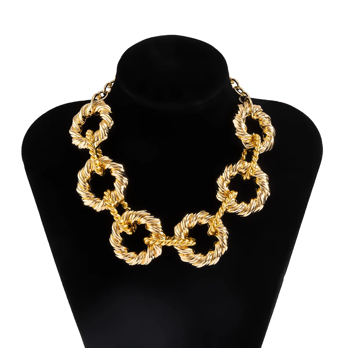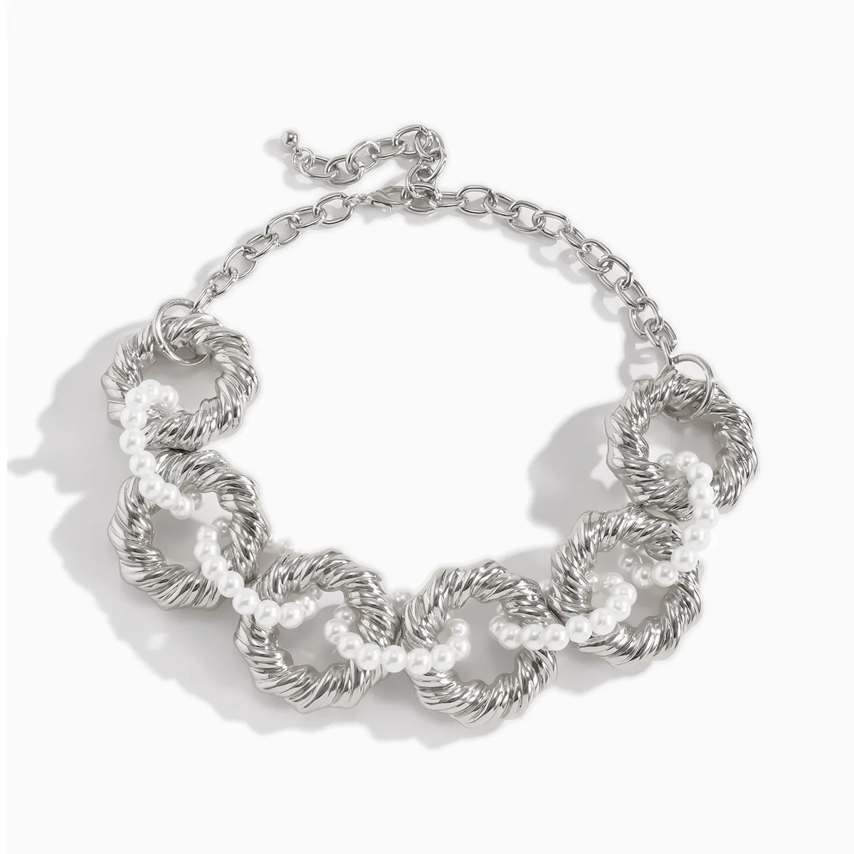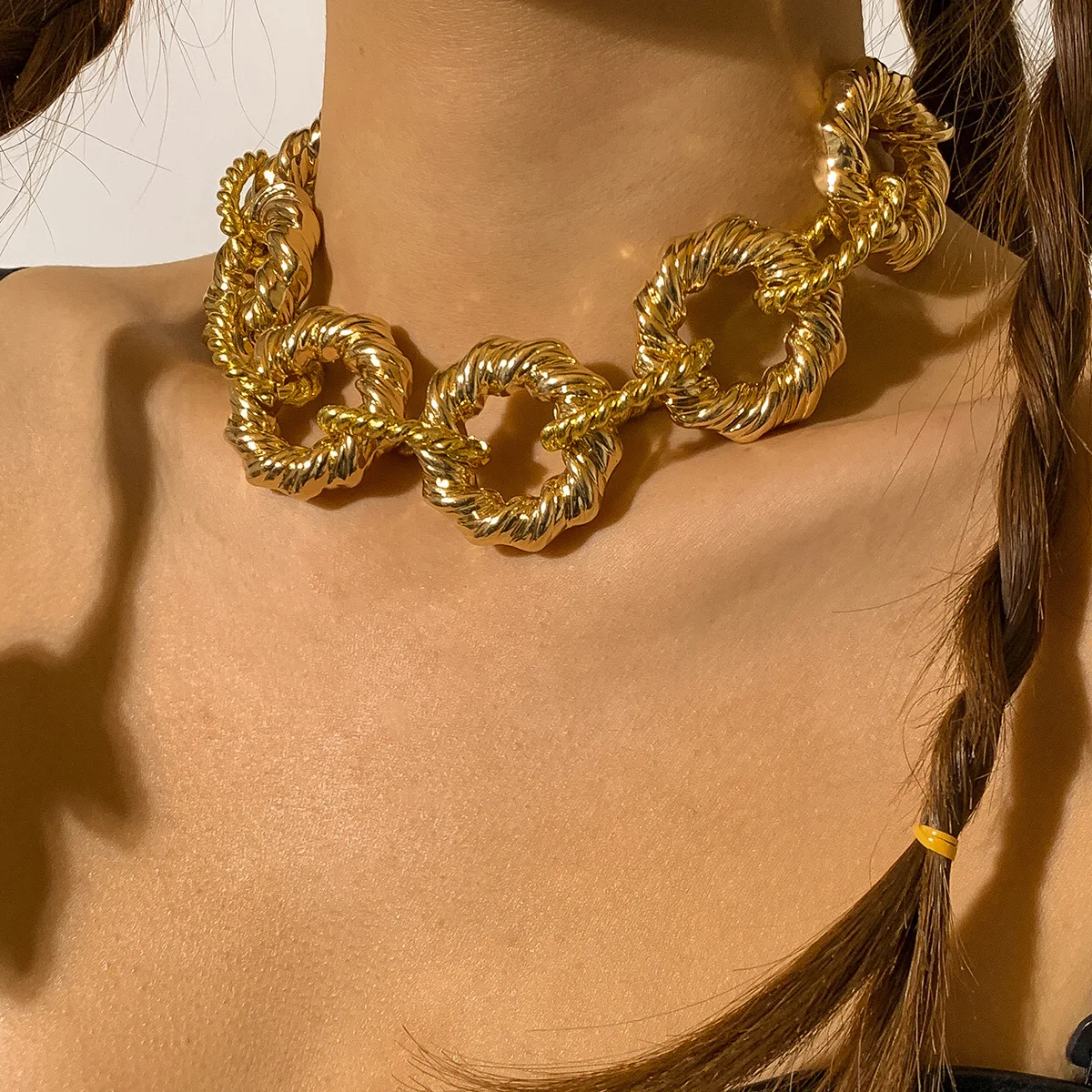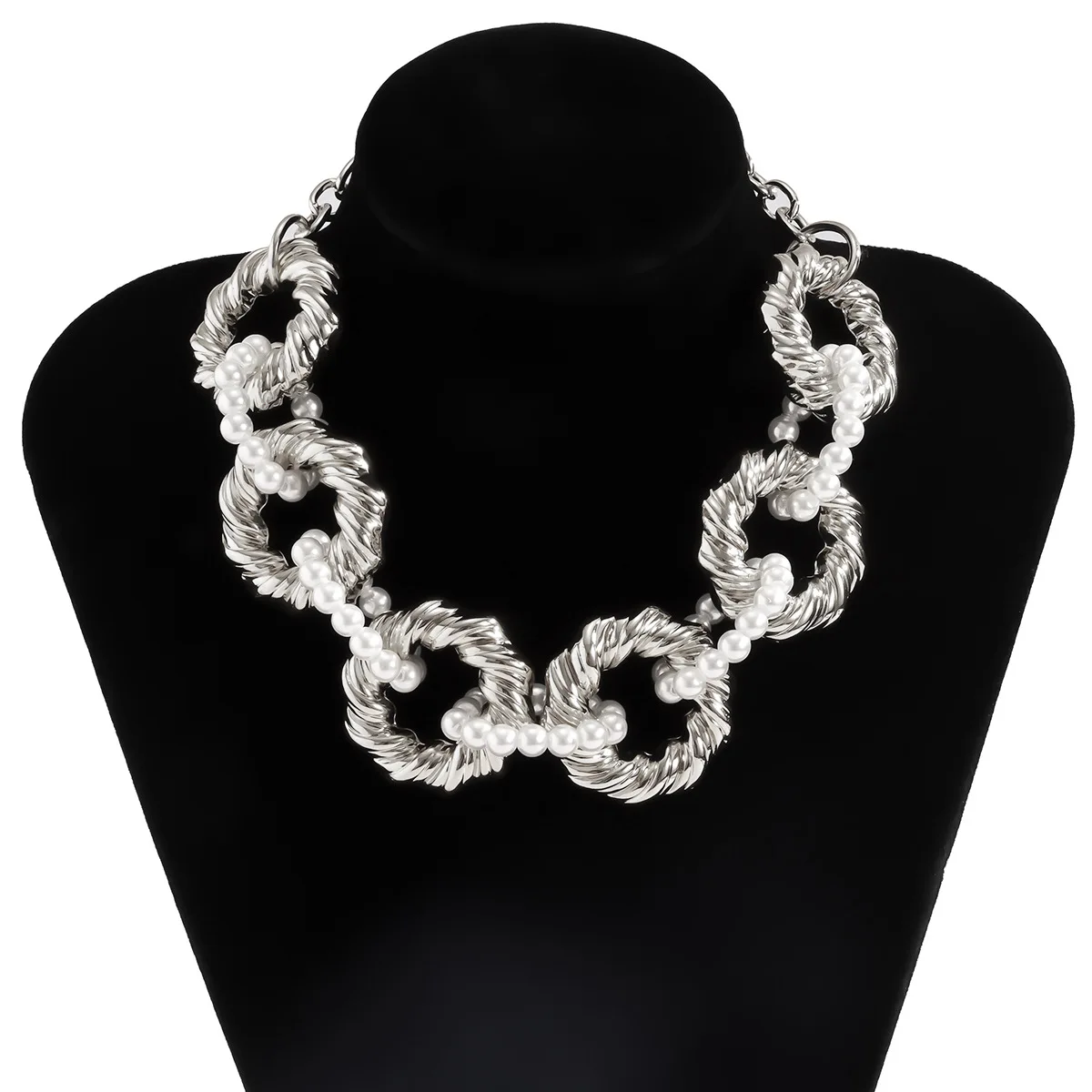FXCUBE Goth Punk Hip Hop Rock Heavy Metal Choker Necklace For Women Thick Twist Chain Circle Pearl Necklace Boho Jewelry Friends