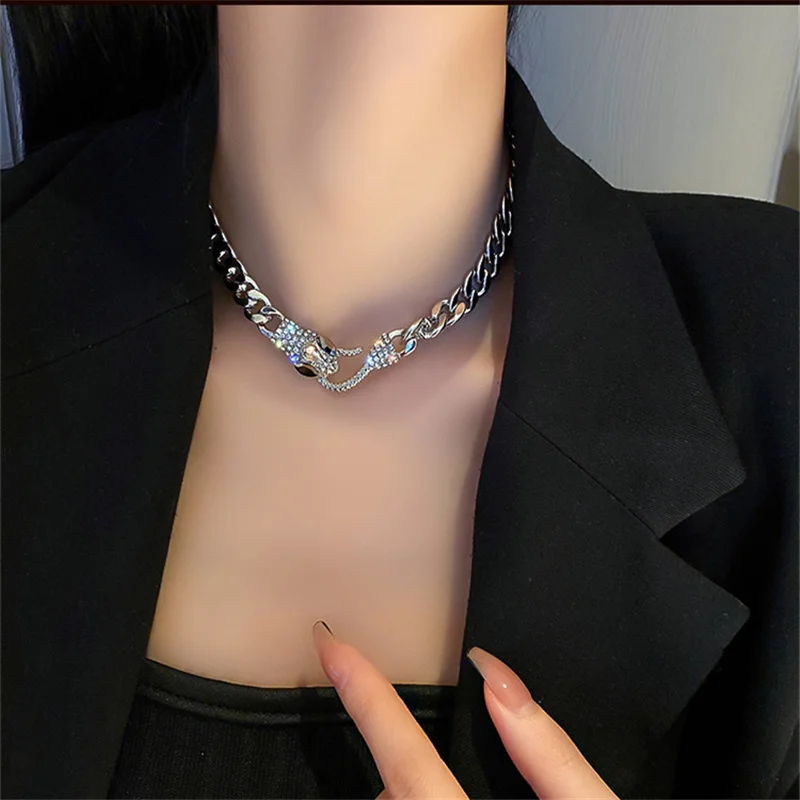 FYUAN Snake Shape Hook Choker Necklaces for Women Geometric Chain Necklaces Statement Jewelry