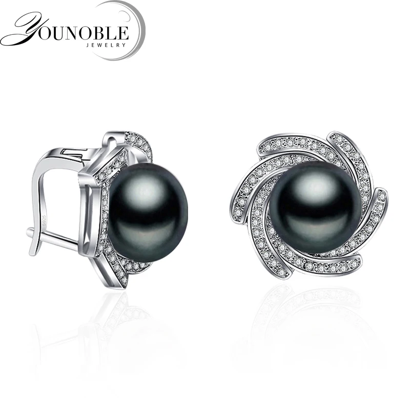 Genuine natural pearl earrings for women,trendy bridal party gift 925 silver black pearl earrings