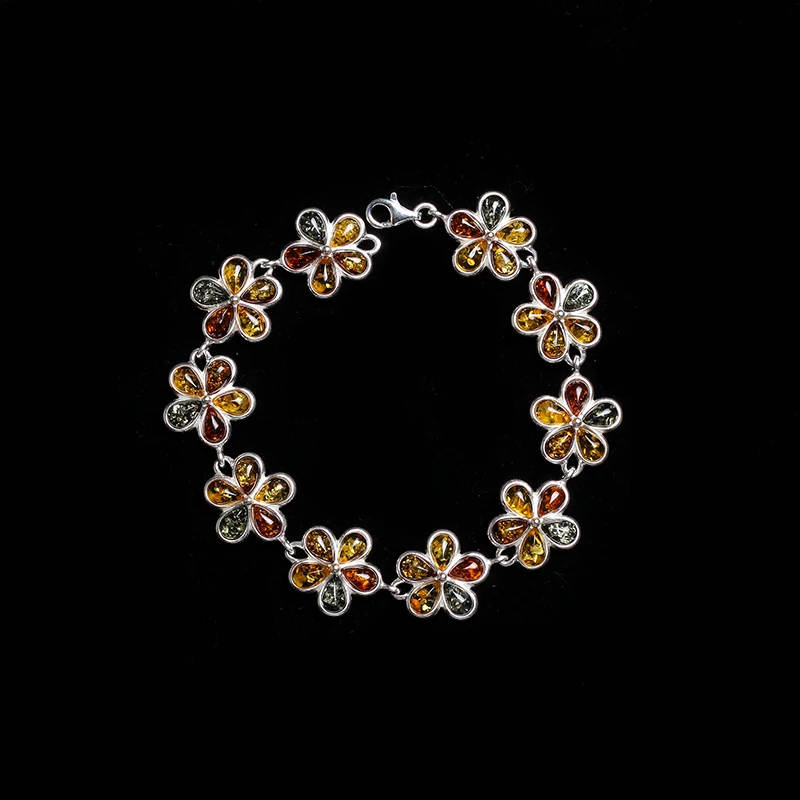 Genuine Sterling silver bracelet natural amber beeswax Bracelets Shipping antique jewelry Europe and the United States back