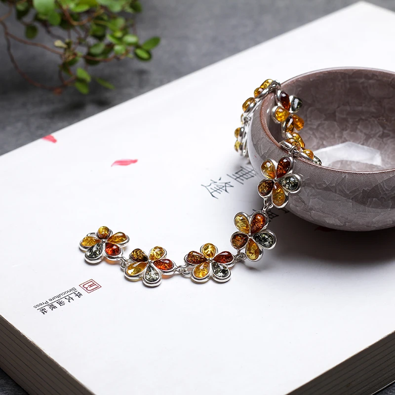 Genuine Sterling silver natural ore Baltic amber beeswax Bracelets Shipping antique jewelry Europe and the United States back