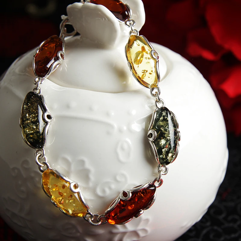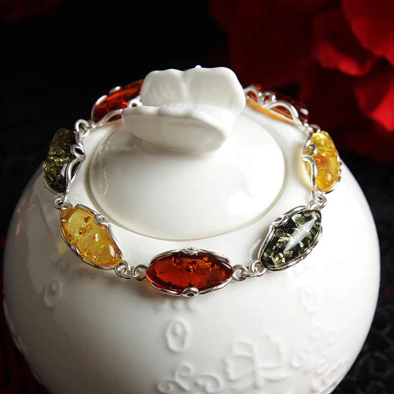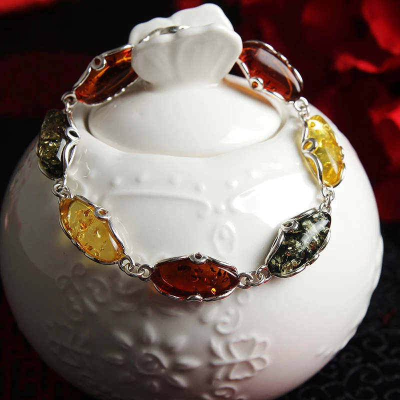 Genuine Sterling Silver Treasure Flower Purple Gold Poodle Amber Bracelet Poland Taste of about 10 grams of imported time 10g