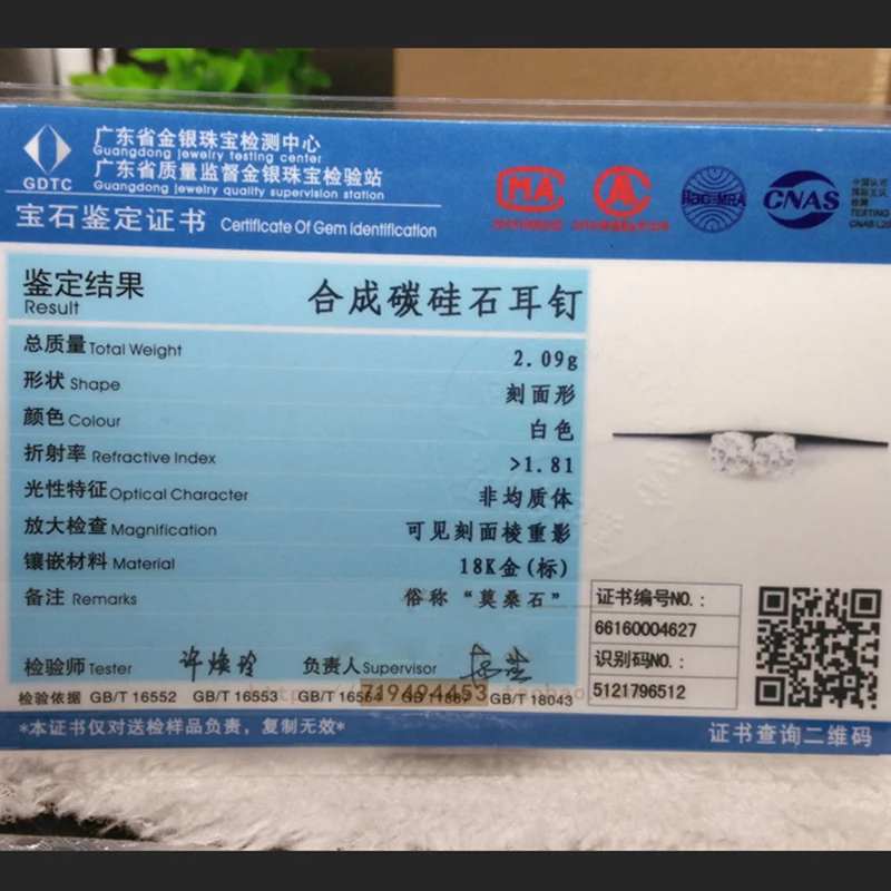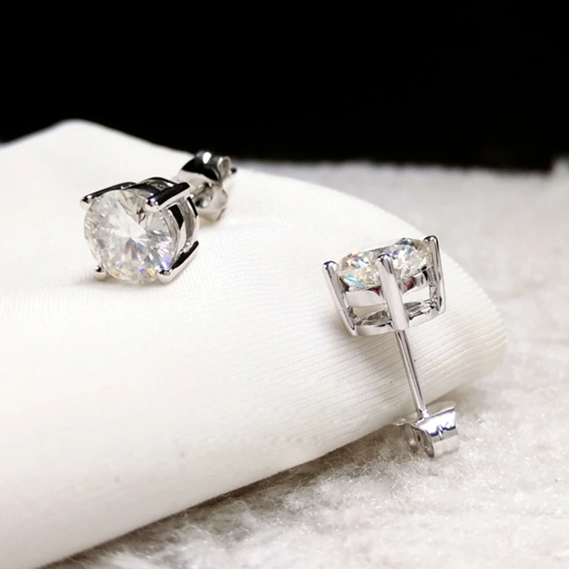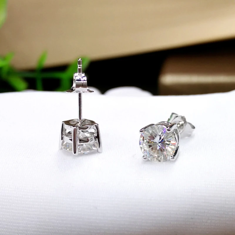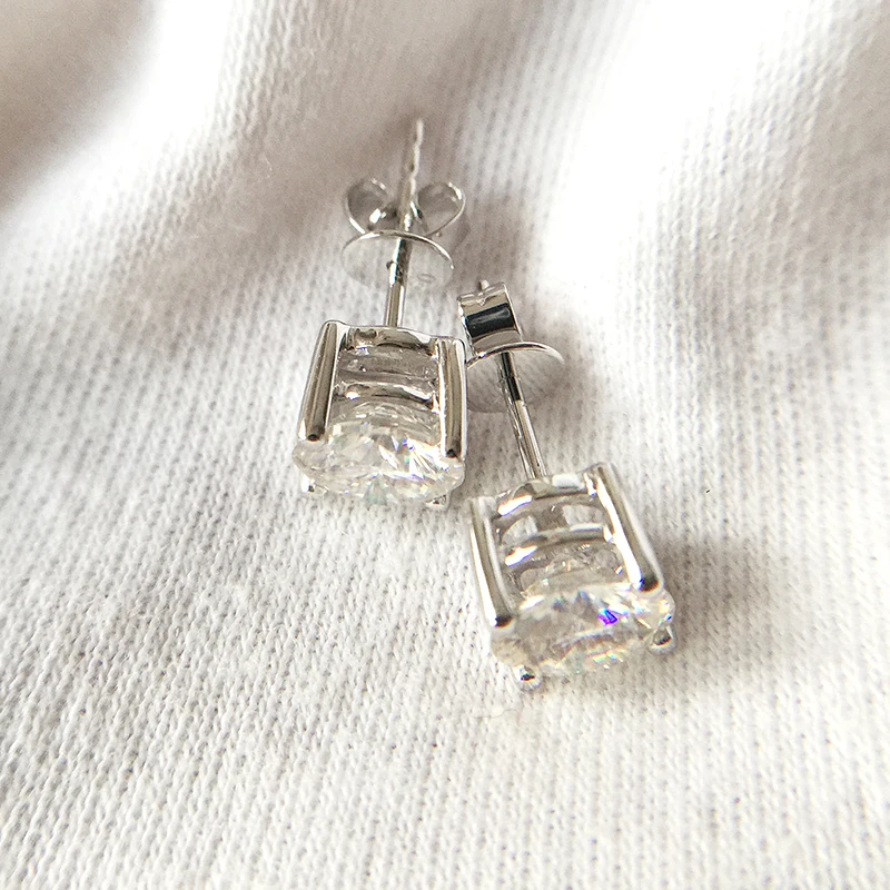 Genuine14K 585 White Gold Push Back 2 Carat ctw F Color Test Positive Lab Grown Moissanite Diamond Earrings For Women