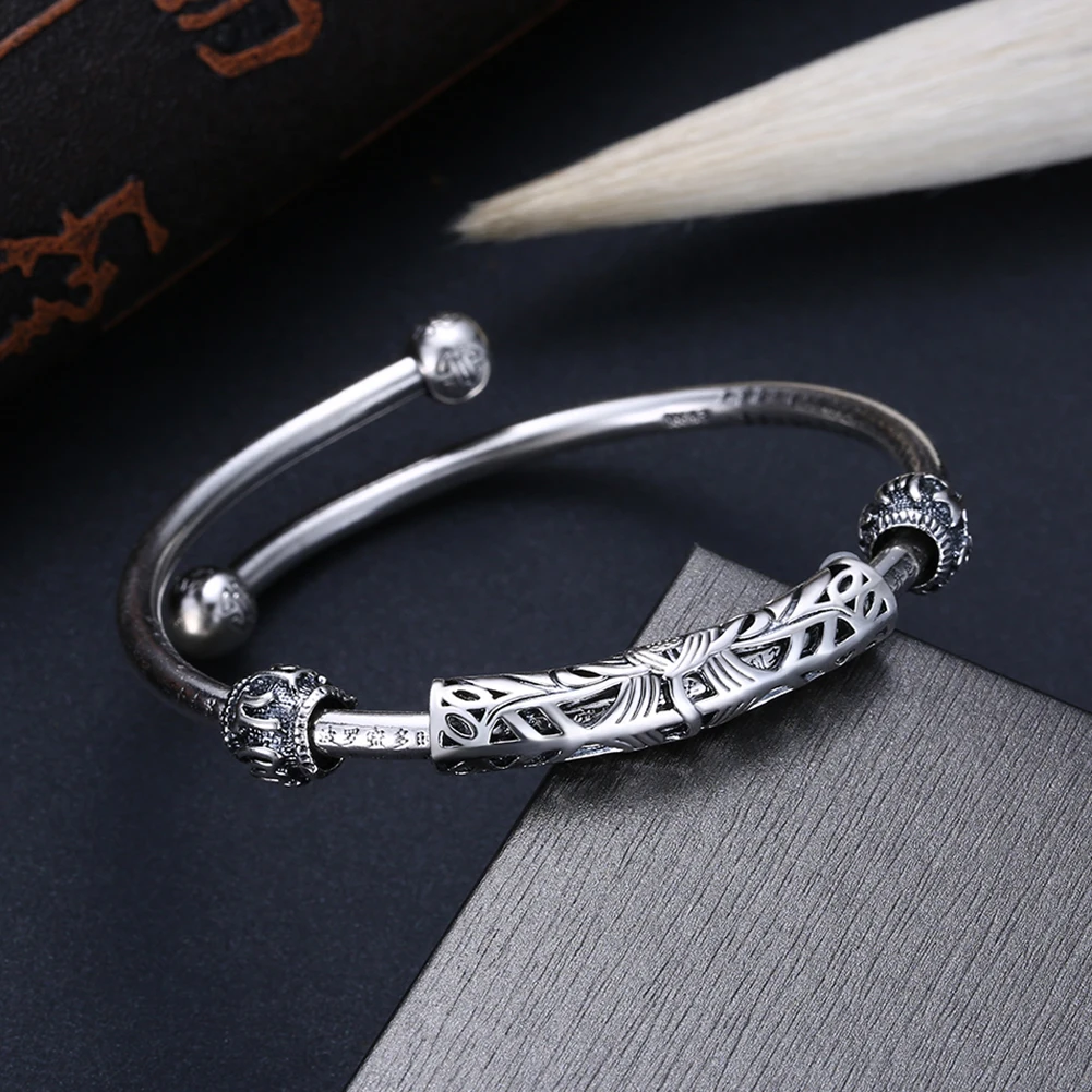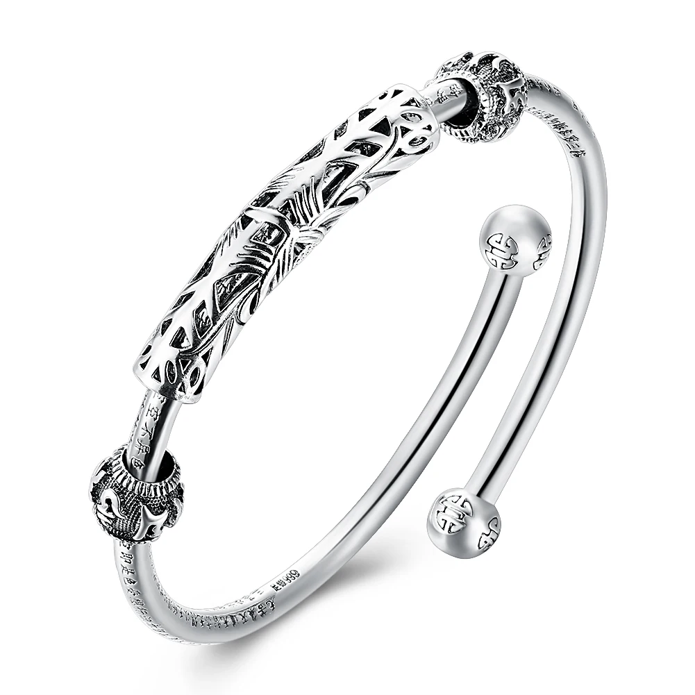 Genuine 999 Sterling Silver Hollow Bangles for Women Fine Jewelry Wedding Bracelet High Quality 2020 New Arrival