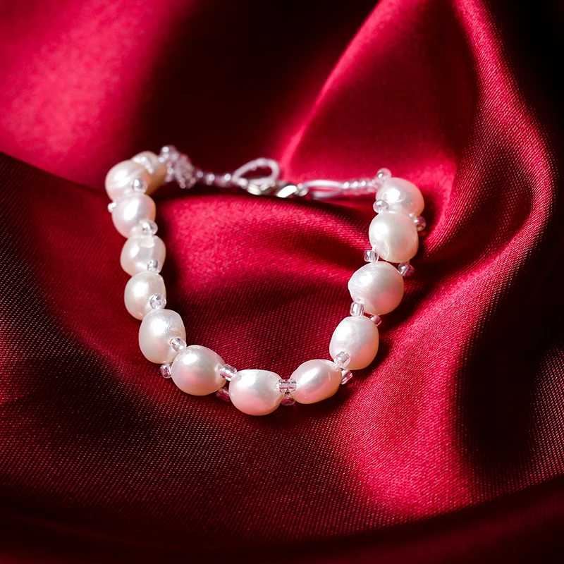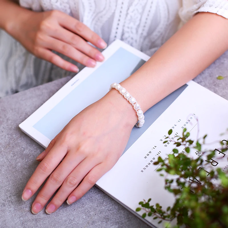 Genuine7.5-8mm four-sided light light white powder purple d pearl bracelet mixed color genuine female gift
