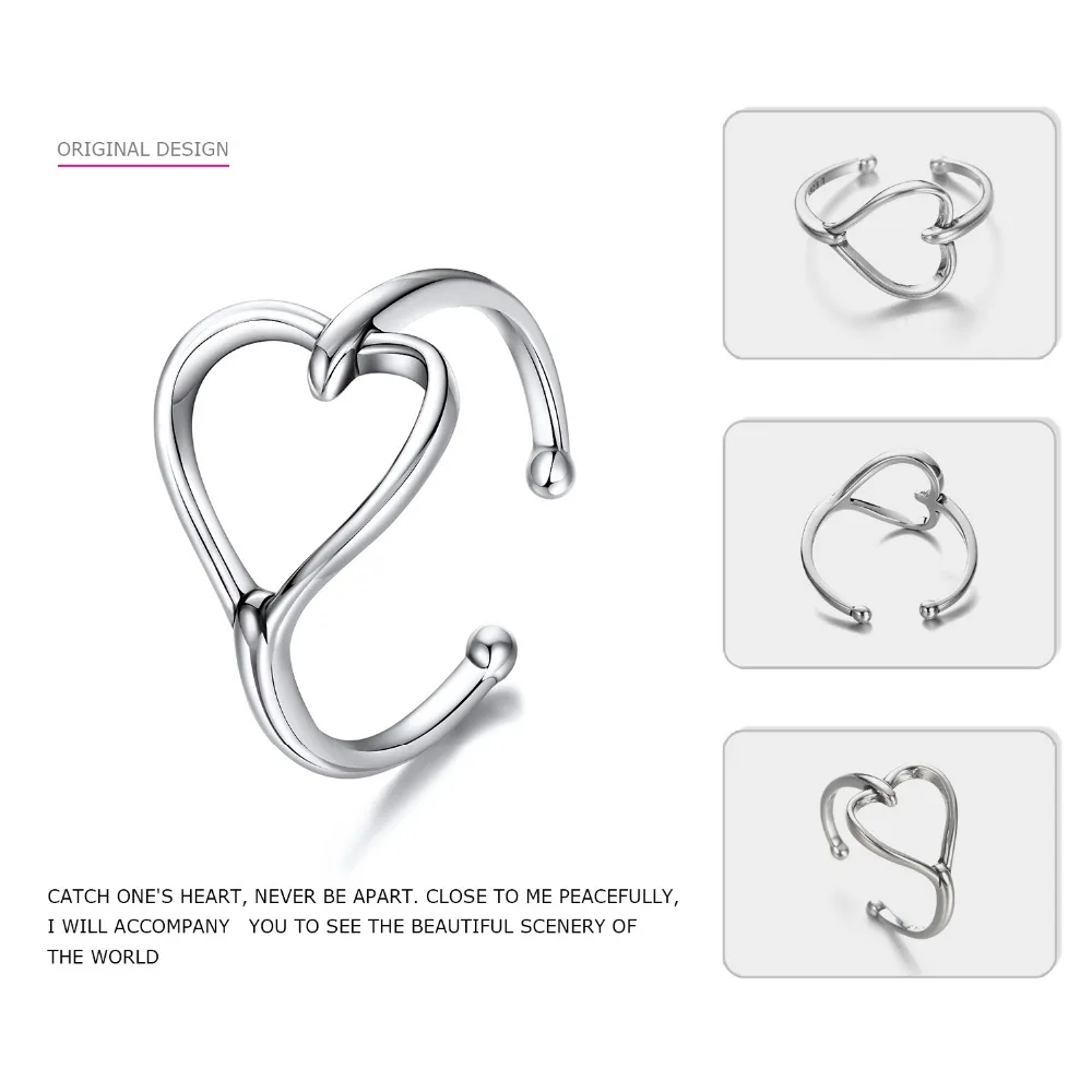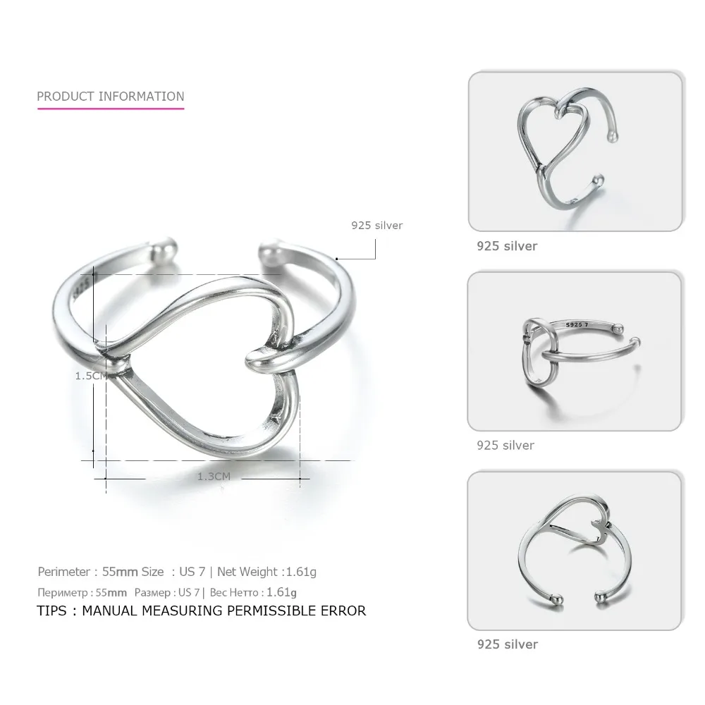 genuine 925 sterling silver Women's Rings heart shape lovely and elegant wedding adjustable rings silver 925 jewelry