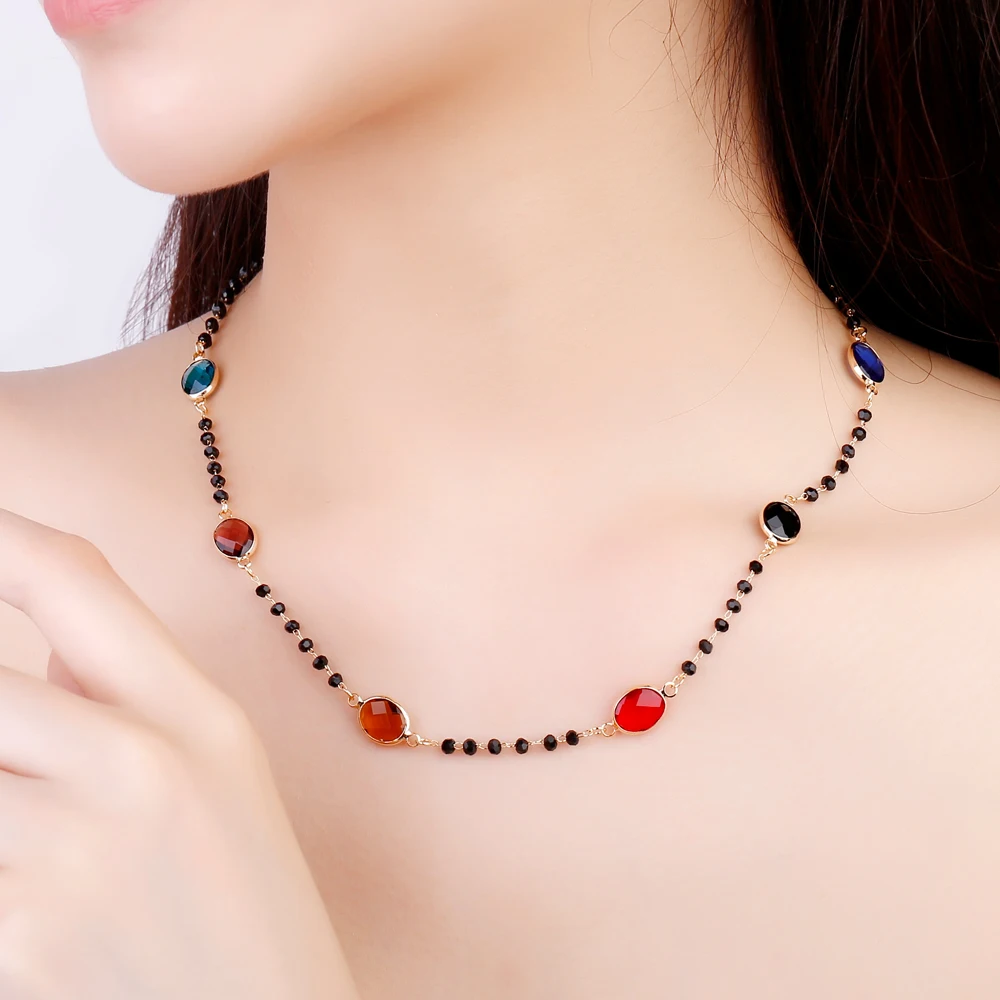 2022 Bohemian Colorful Zircon Black Crystal Seed Bead Long Chain Necklace For Women Trendy Women Jewelry Statement
