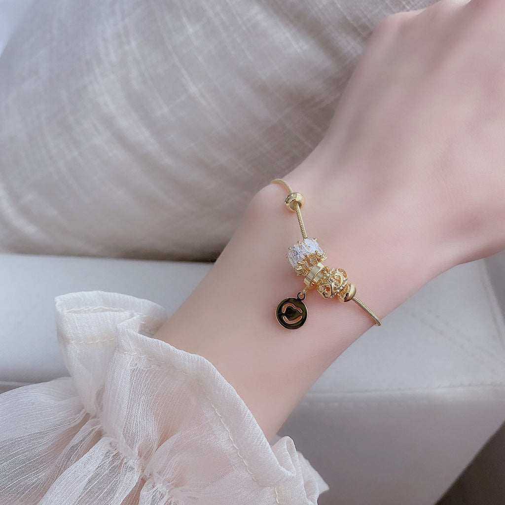 2022 Korean design jewelry high sense geometric round hollow beads zircon crystal adjustable female bracelet