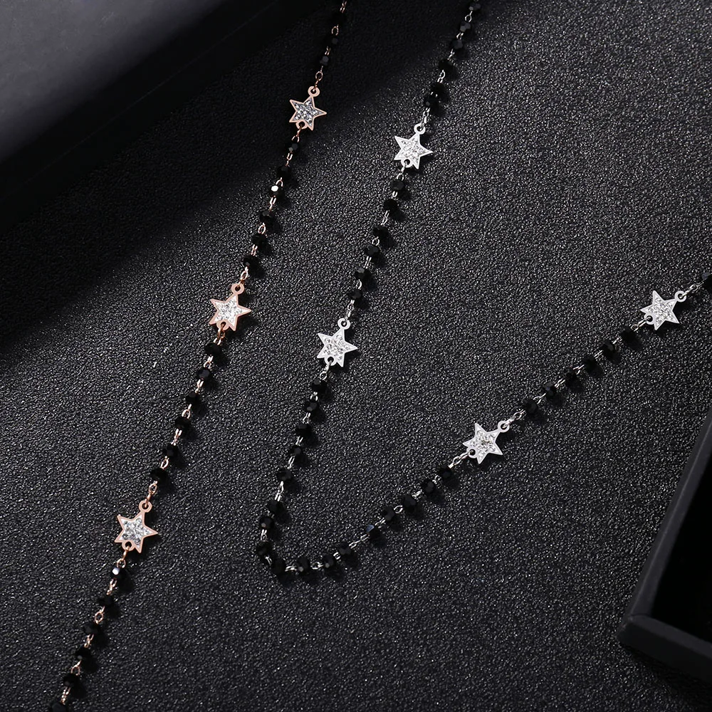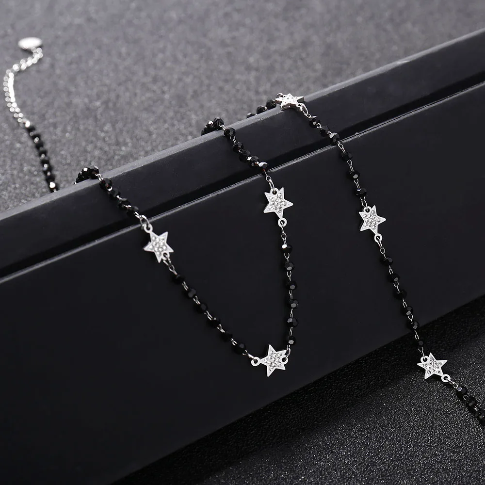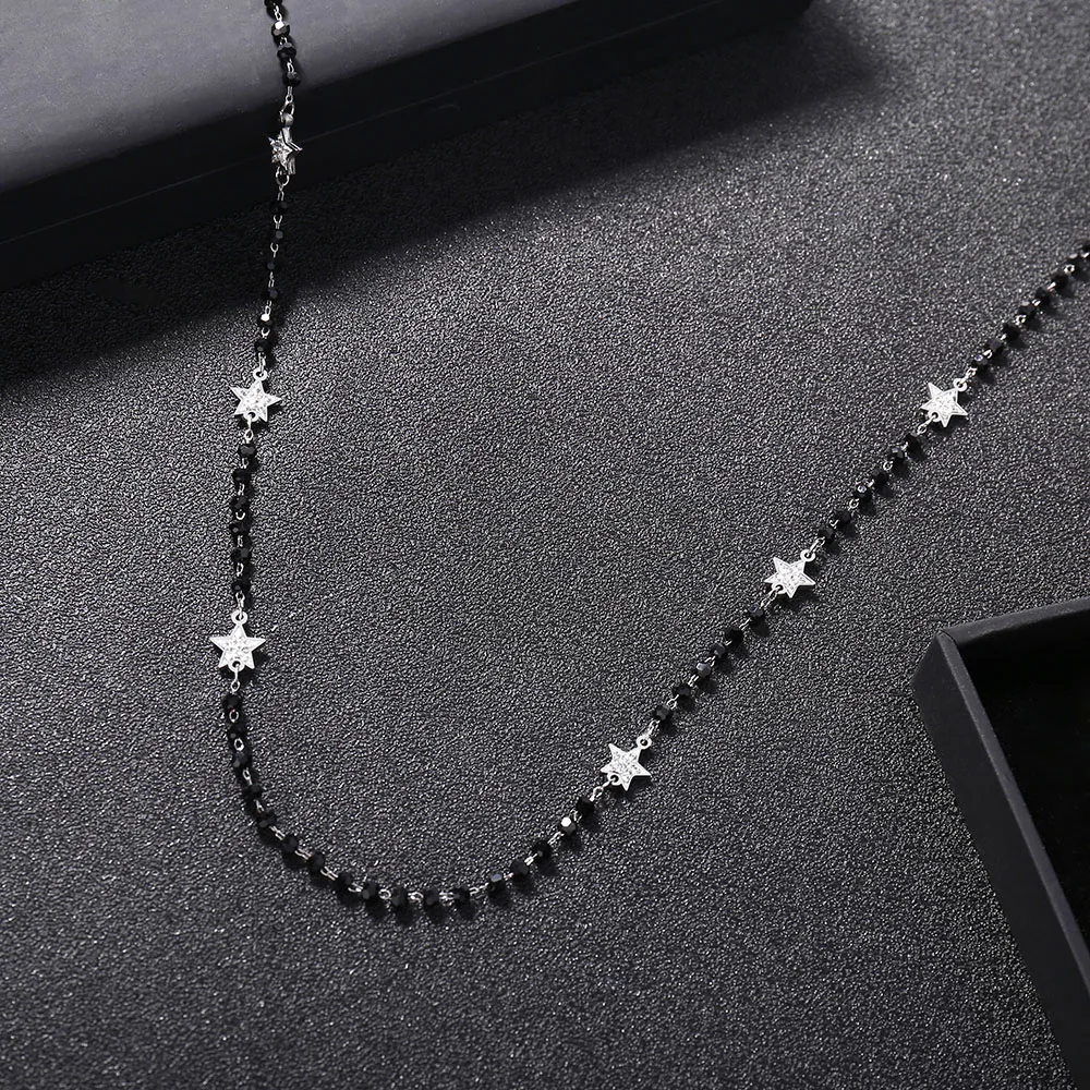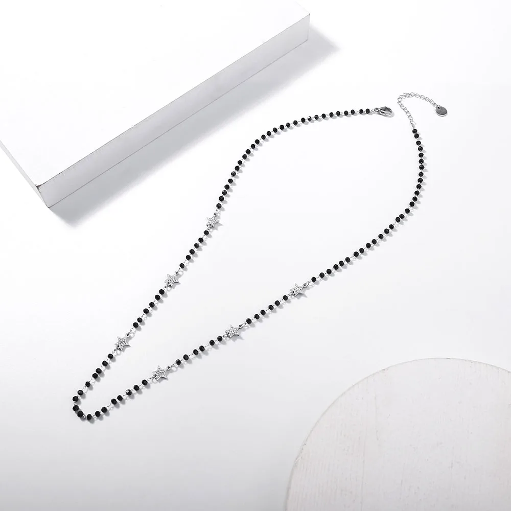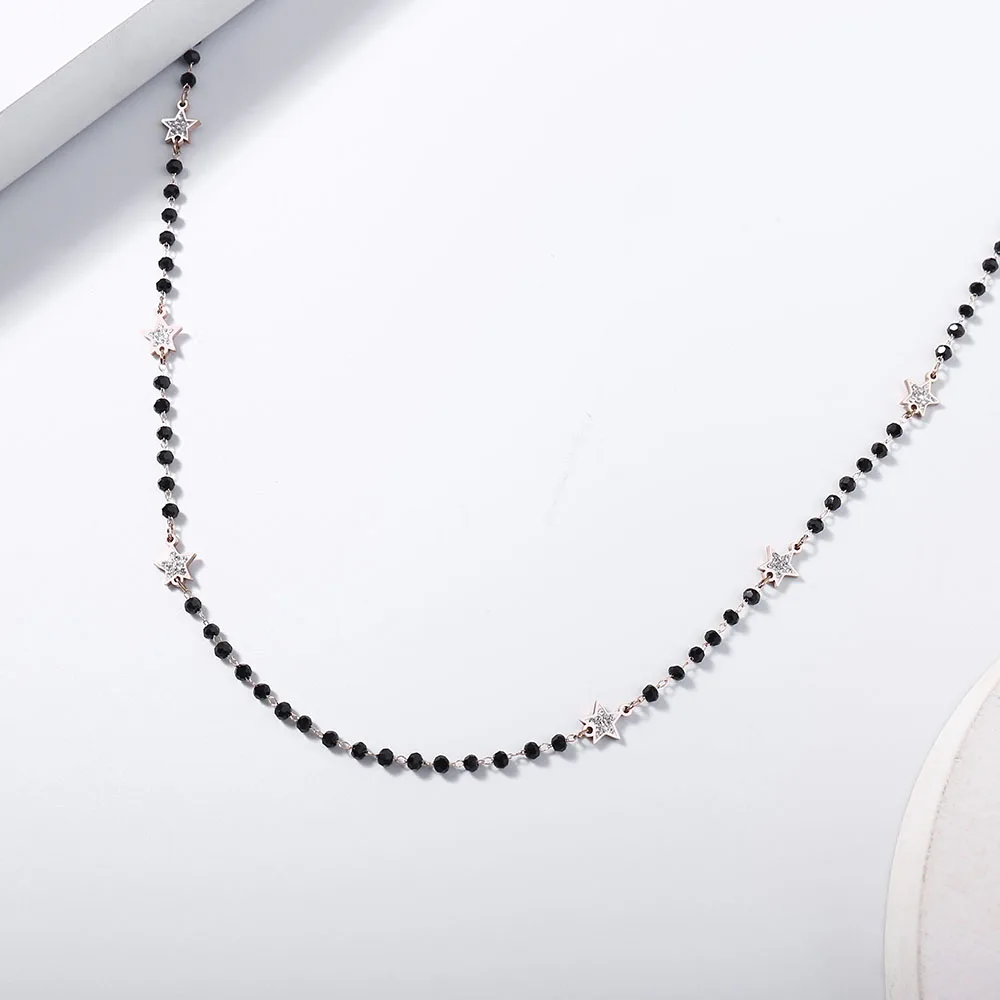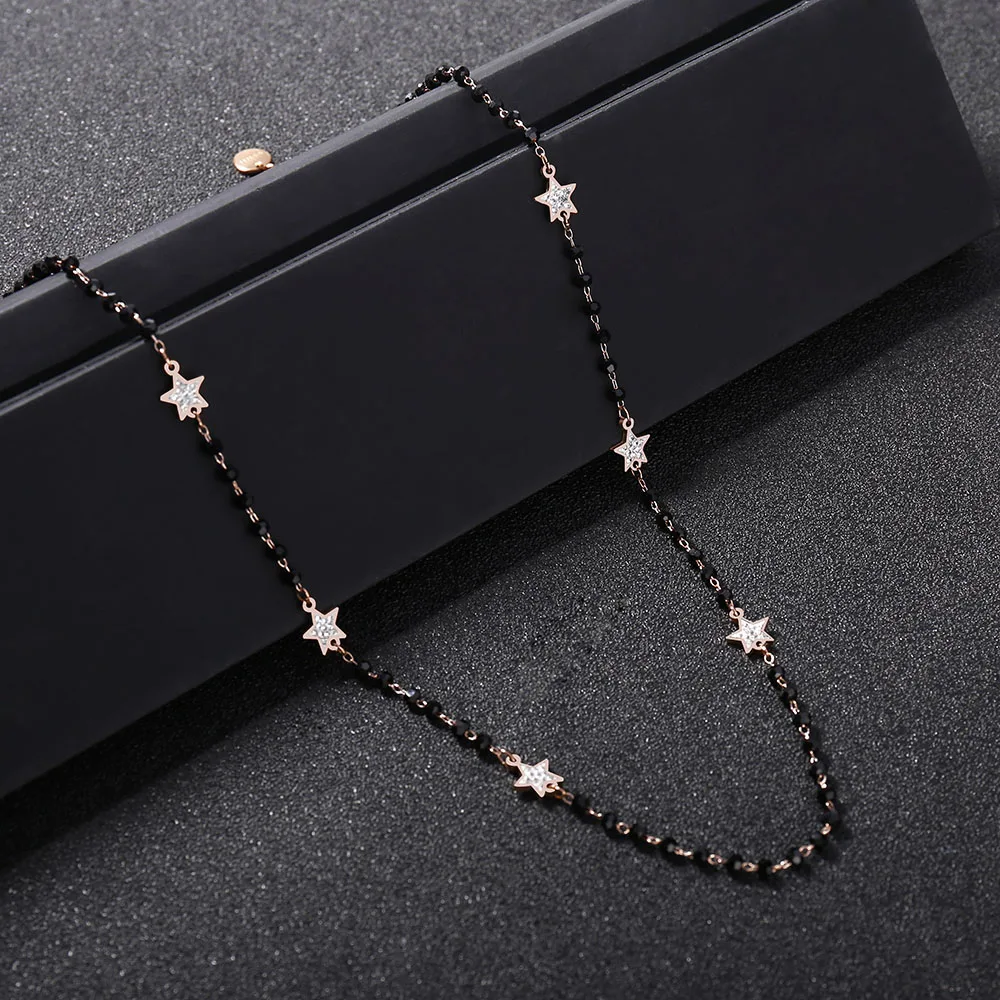 Classic Bling Crystal Star Beaded Necklaces For Woman Shimming Crystal Little Star Stainless Steel Chain Choker Gilrs Jewelry