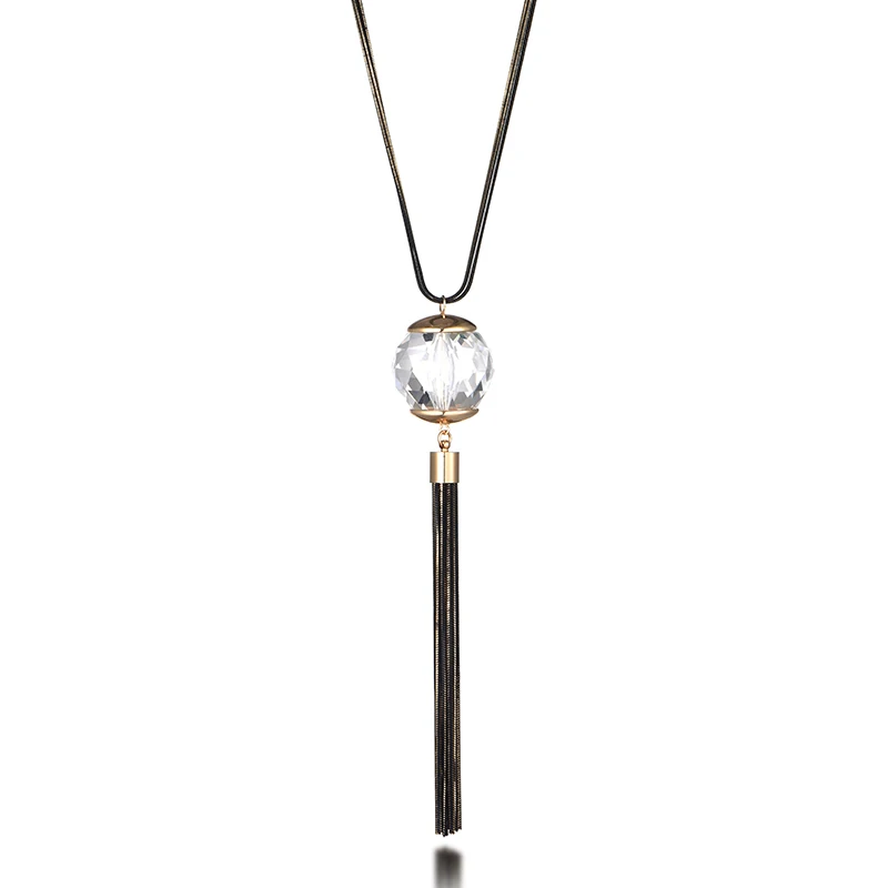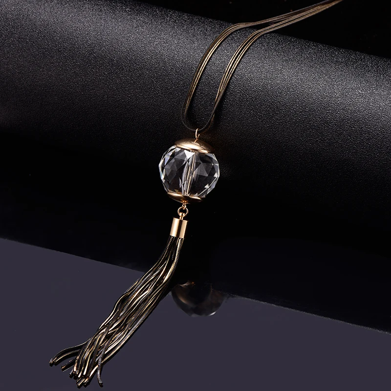 Crystal Bead Sweater Charm Chain Necklace Gold Color Tassel Design Pendant Long Sweater For Women Necklace Jewelry 2022