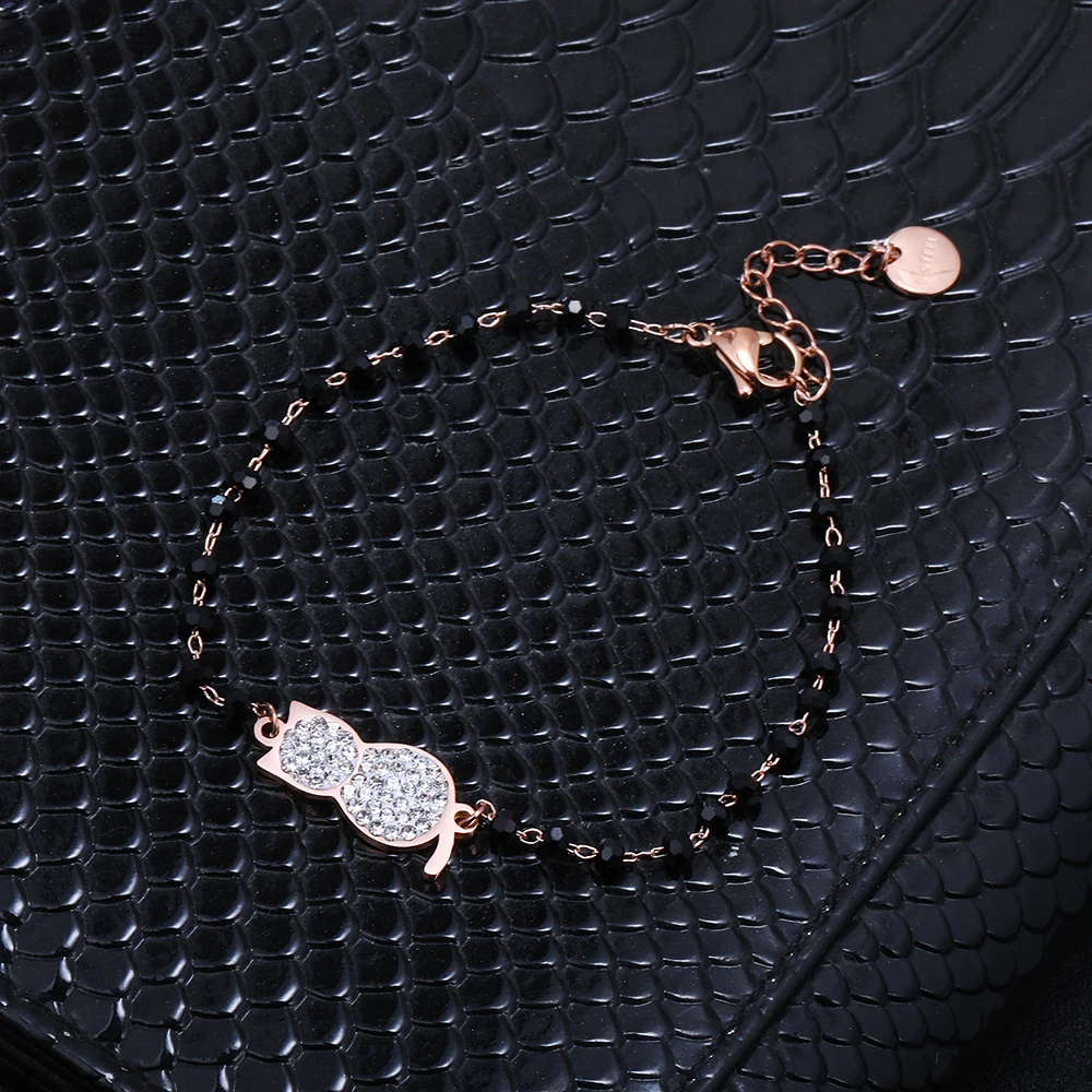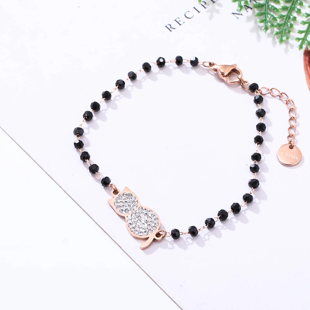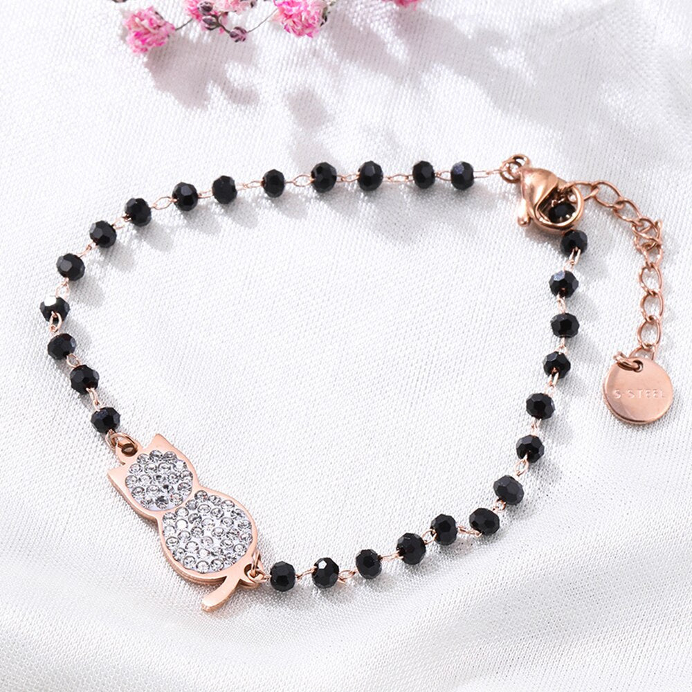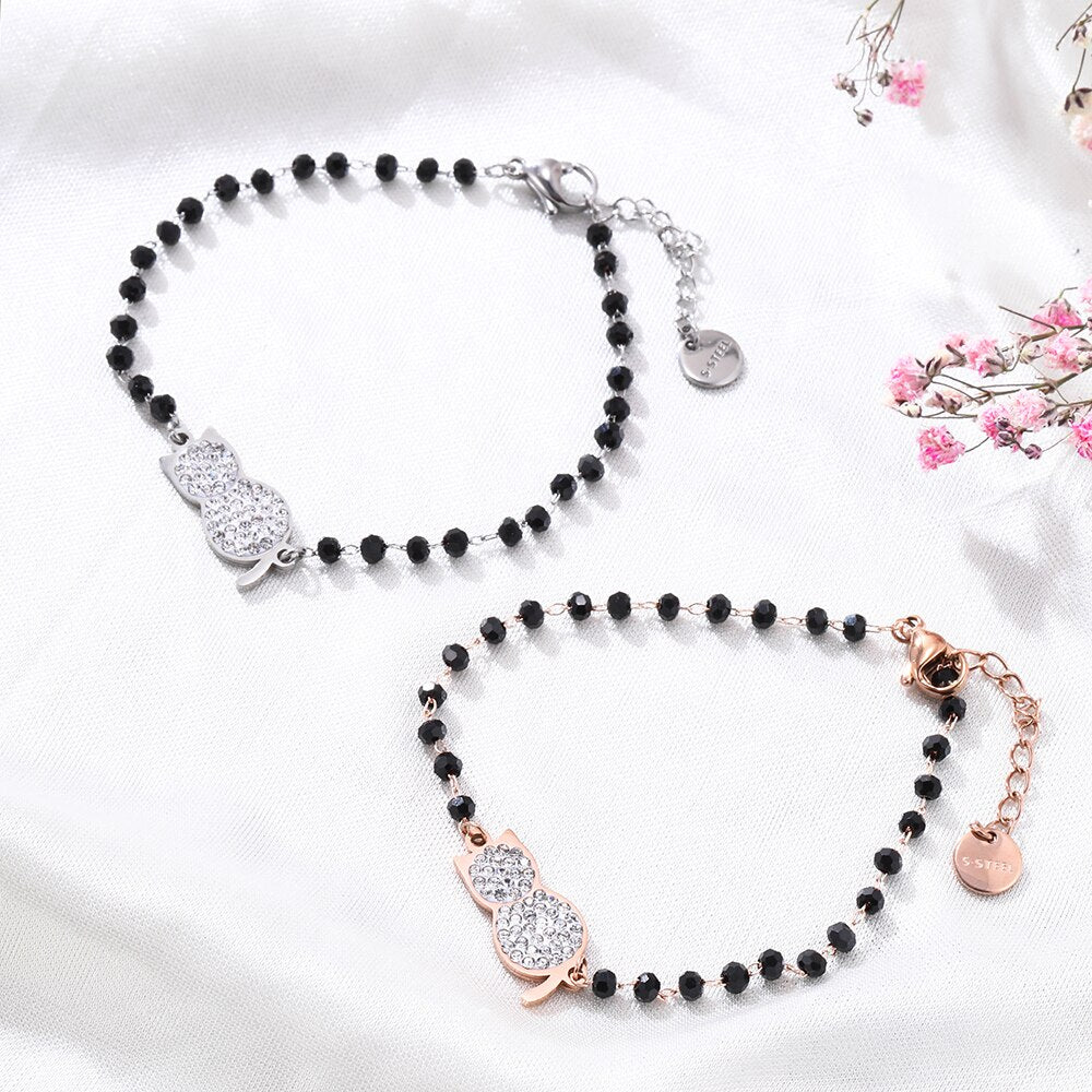 Color : Black Bead + Silvery /Rose Gold Cat Charm