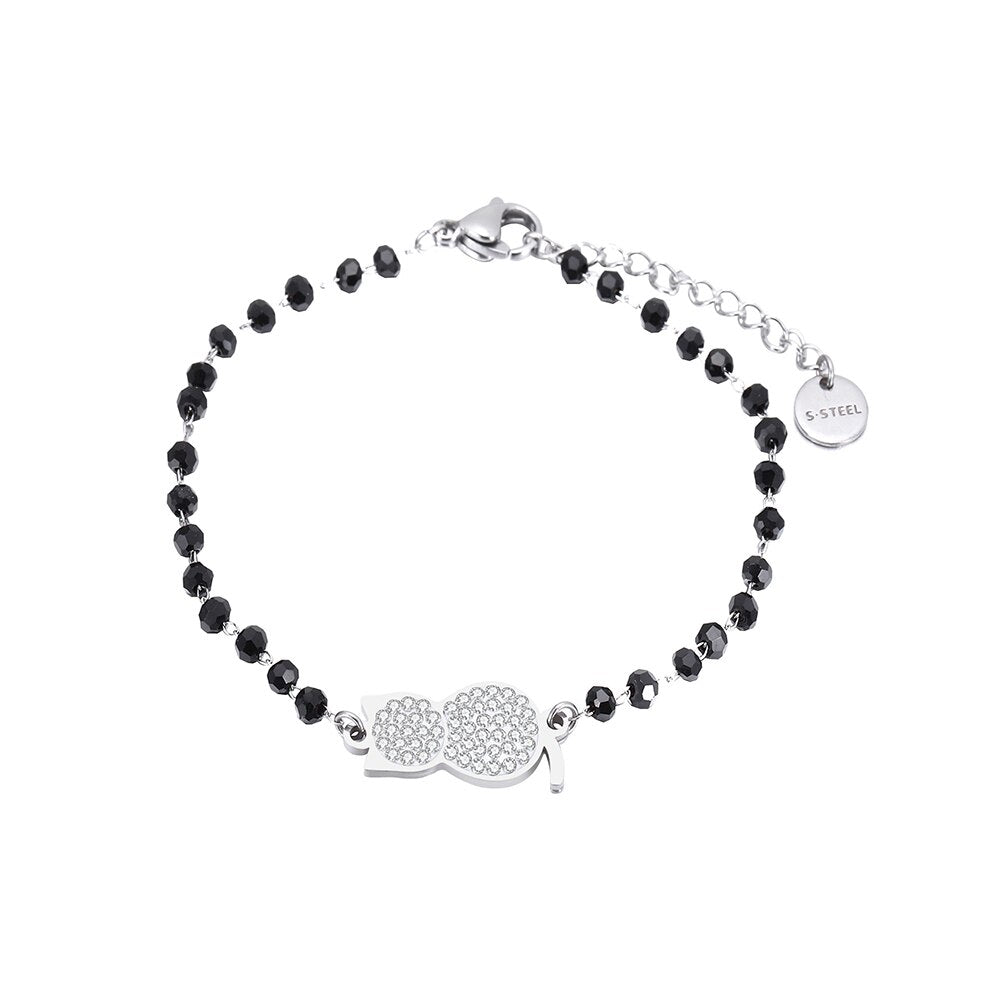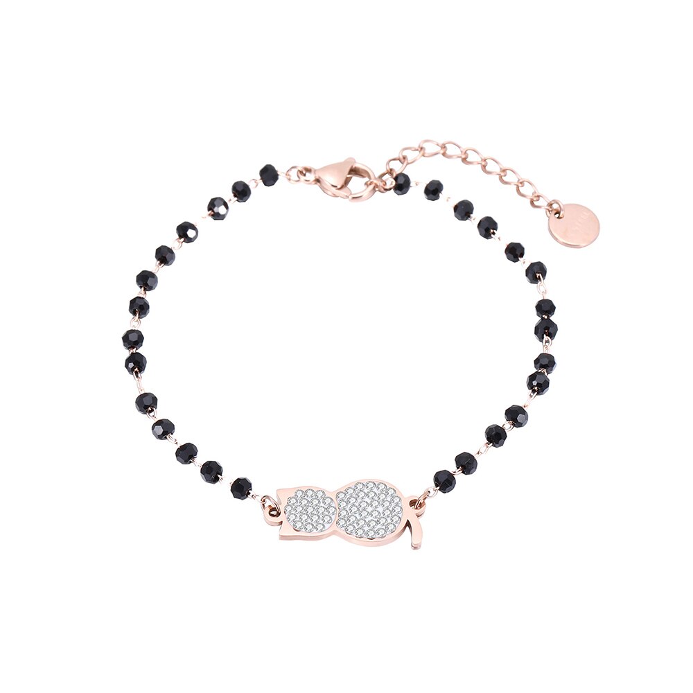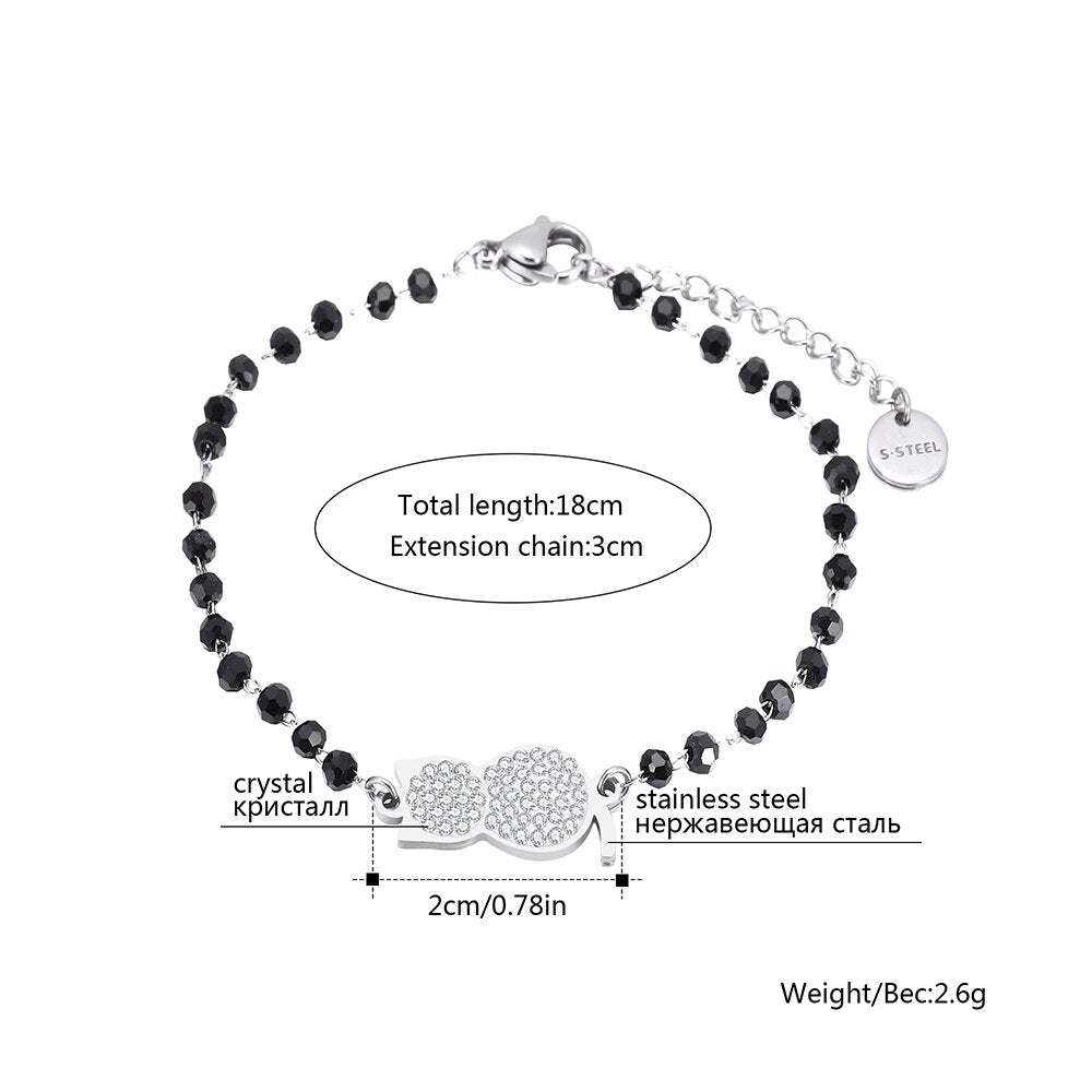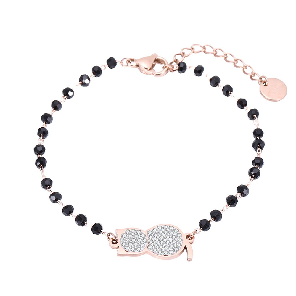 Color : Black Bead + Silvery /Rose Gold Cat Charm