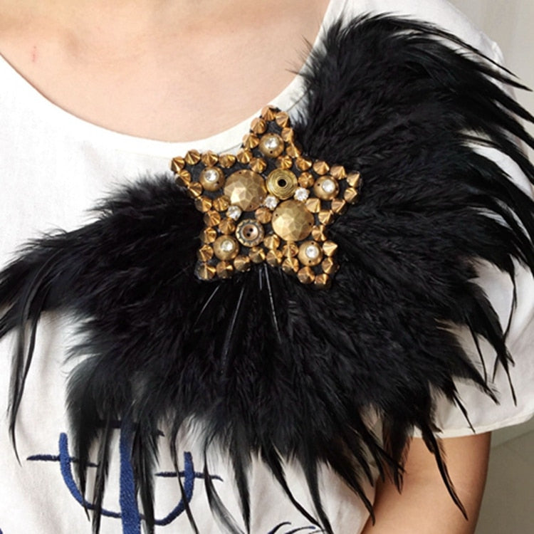 Handmade star beaded feather epaulette shoulder brooch epaulet/epaulettes spikes/escapulario blazer accessories Host decoration