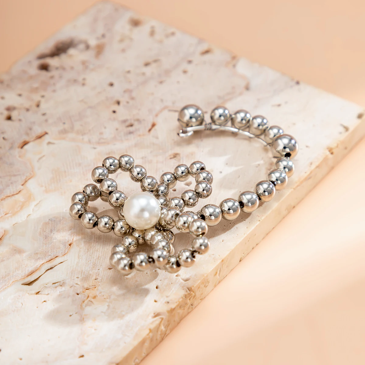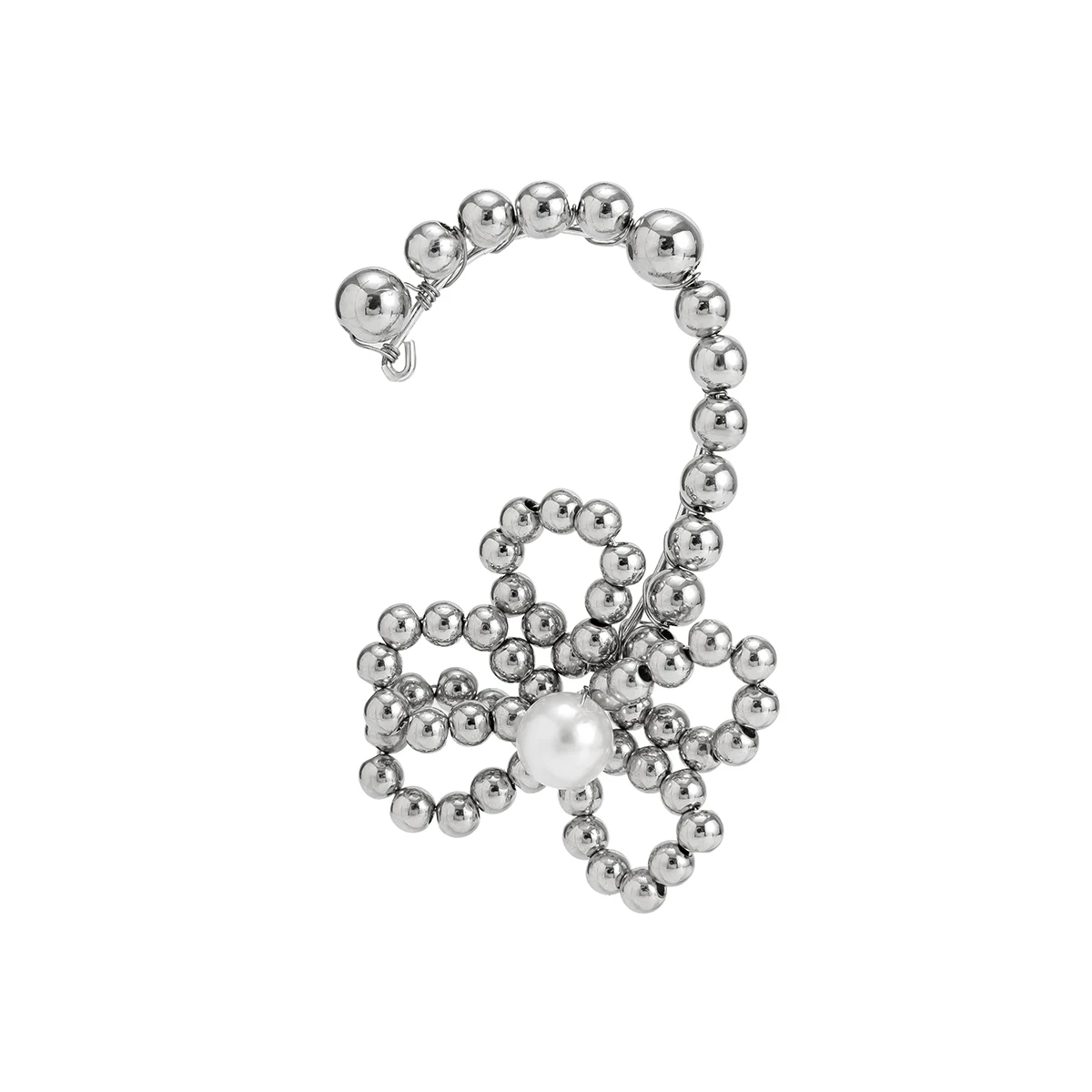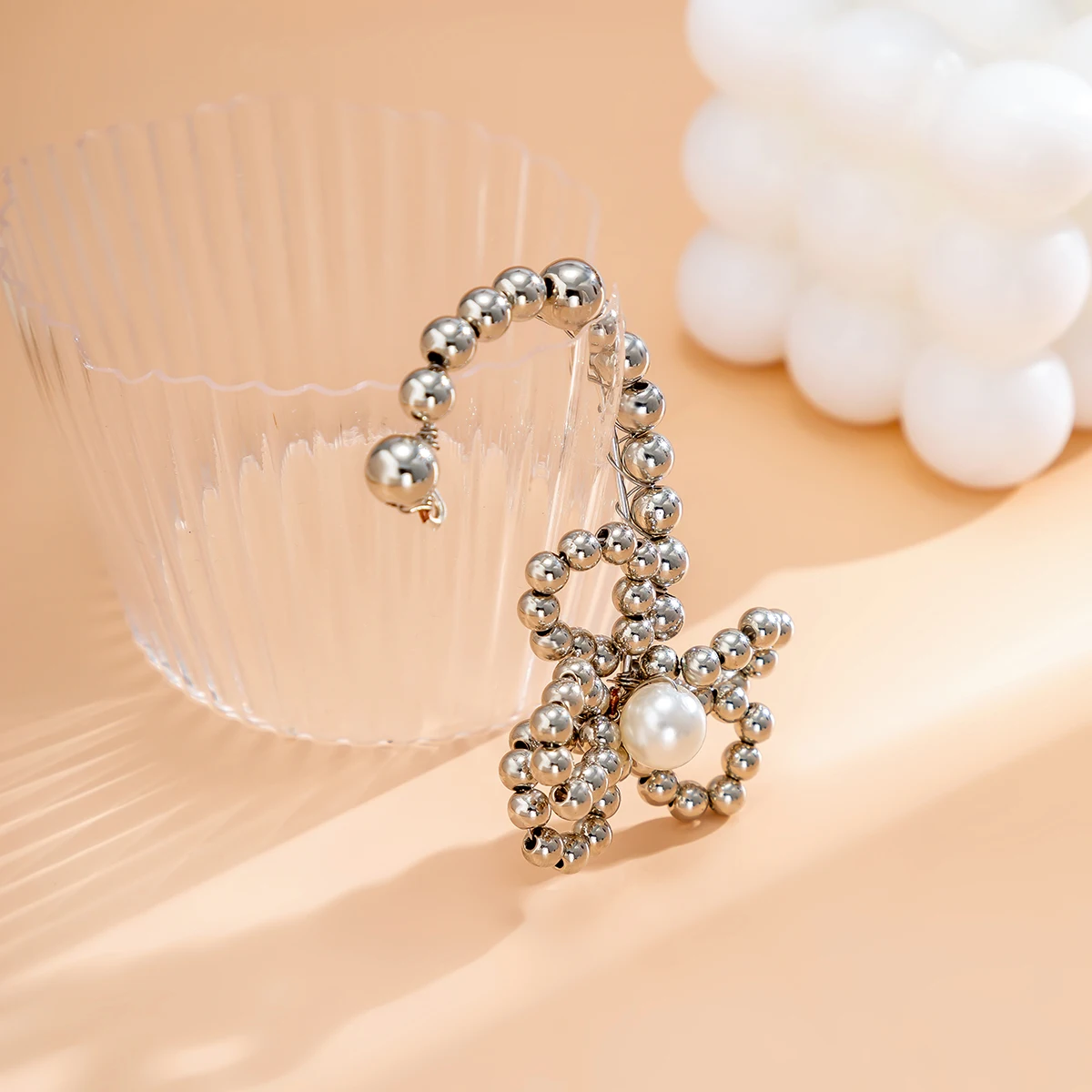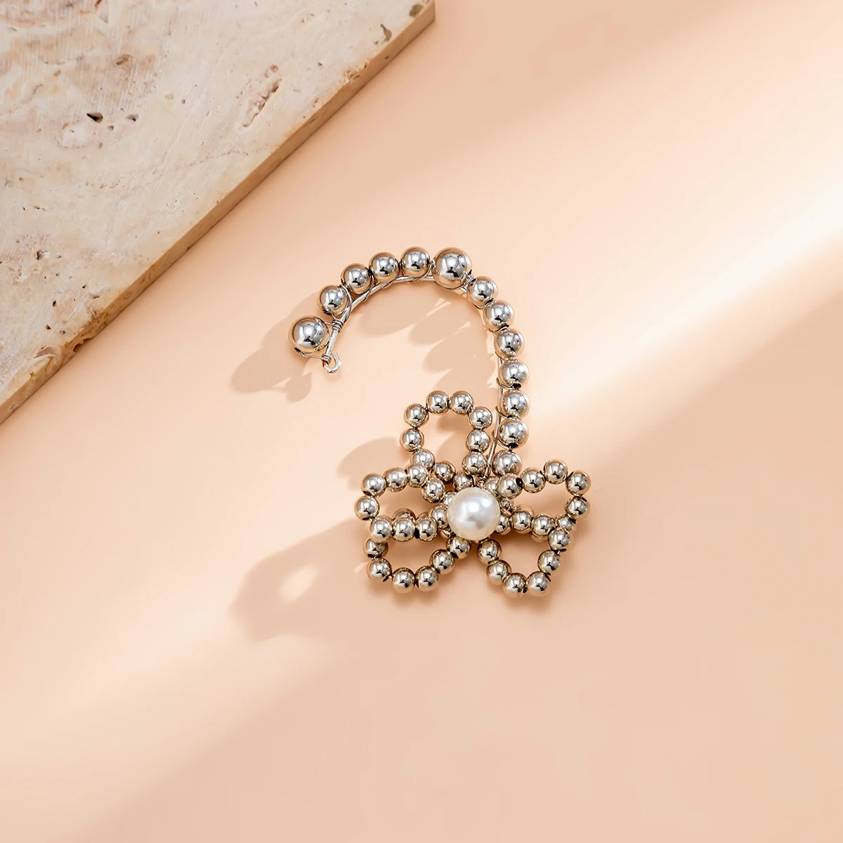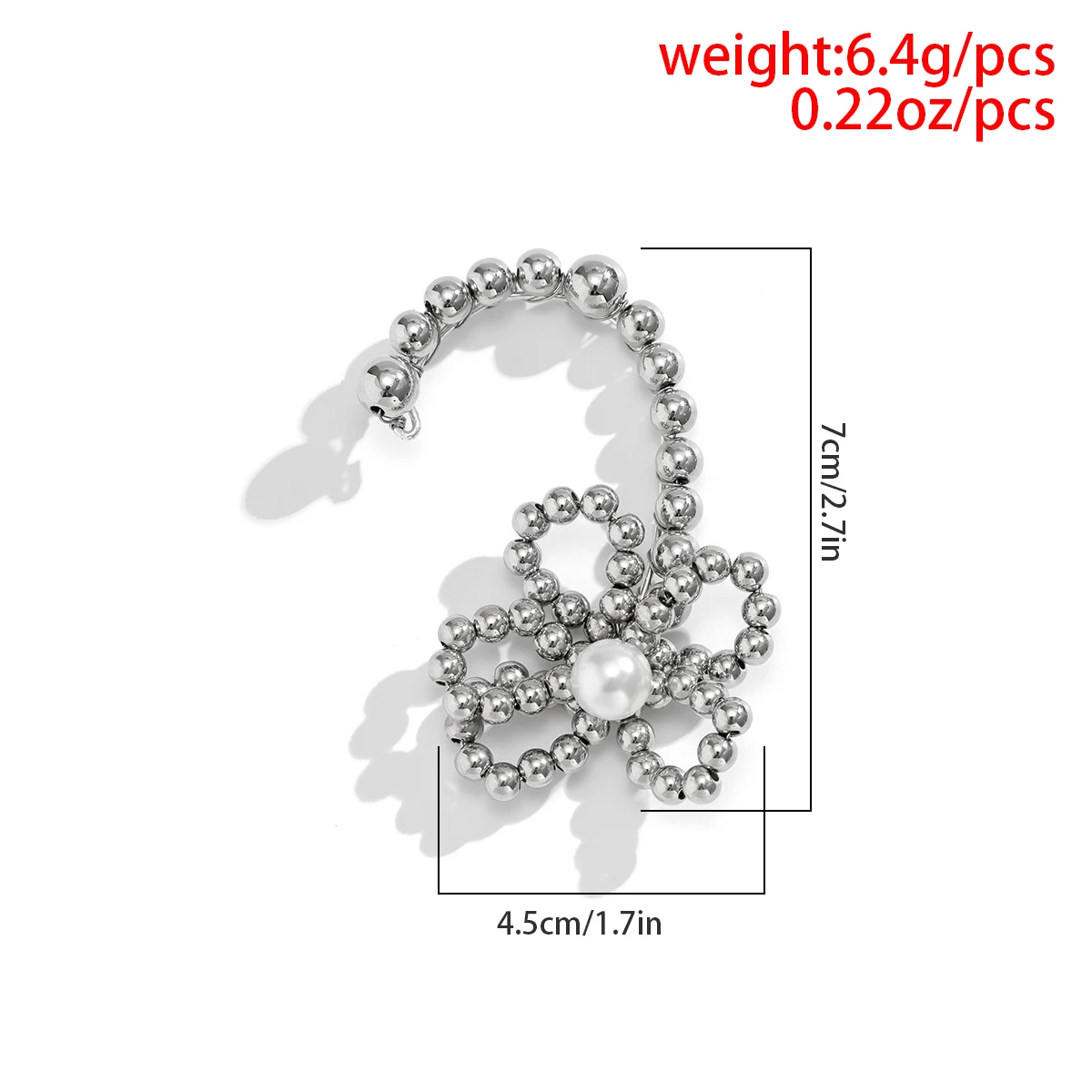 IngeSight.Z Punk CCB Beaded Flower Shape Ear Clip For Women Elegant White Peal Ears Hang Without Piercing Wedding Jewelry 1pcs
