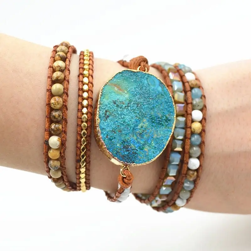 Latest 2020 - 5X Leather Wrap Beaded Bracelet Huge OceanStone Bracelet, Boho Chic Jewelry, Bohemian Bracelet Valentine's Gift!