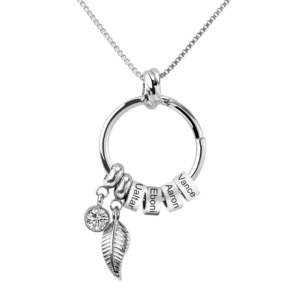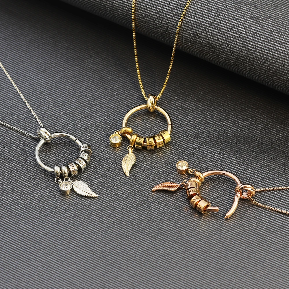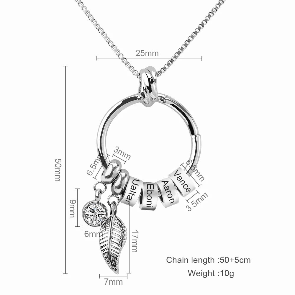 Mother's Day Gift Women Jewelry MOM Necklace Personalized Custom Names Beads With Birthstone Circle leaf Heart Pendants