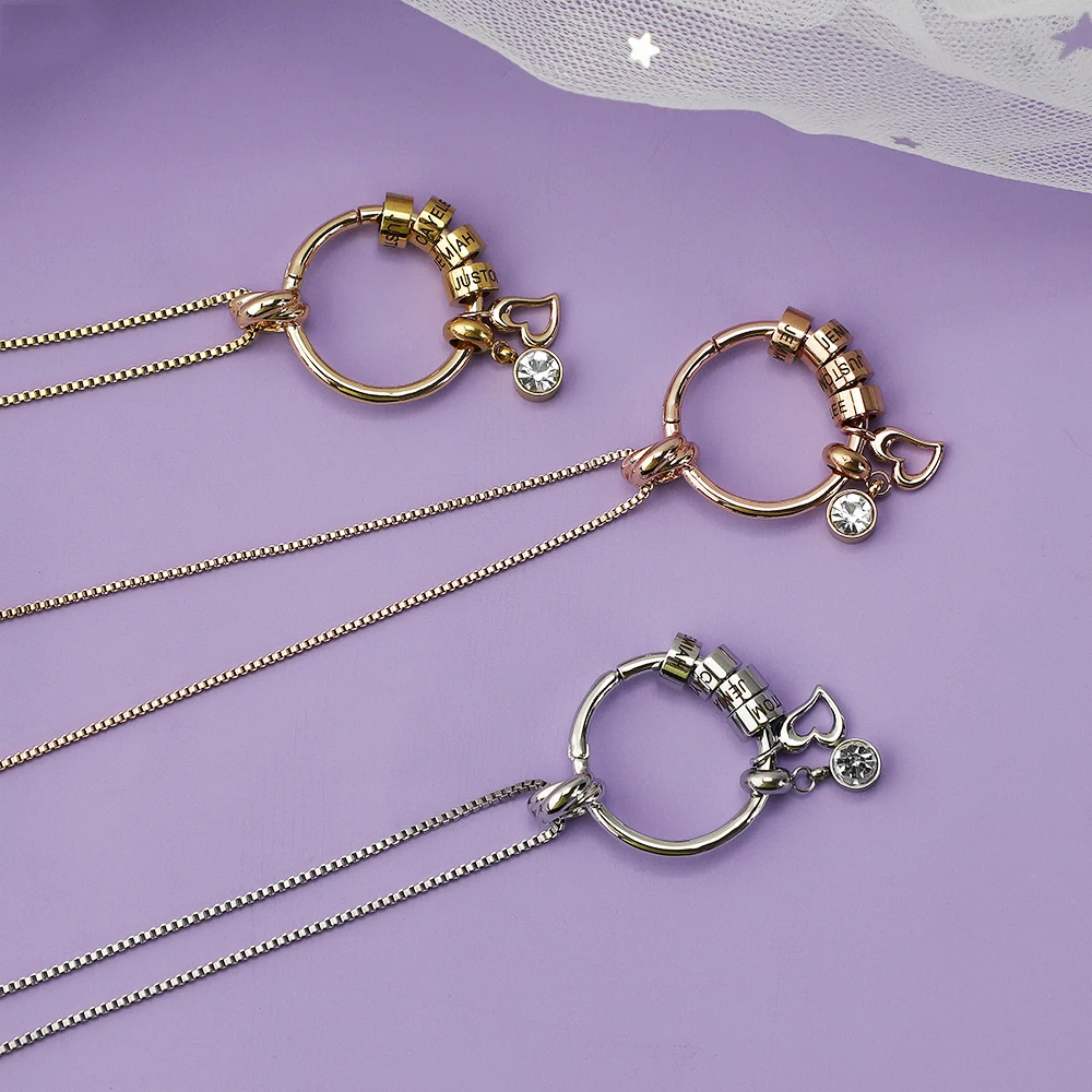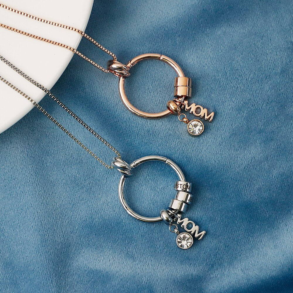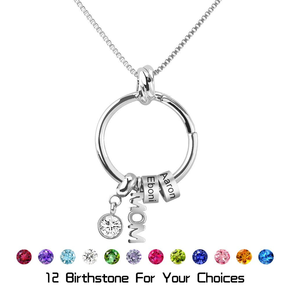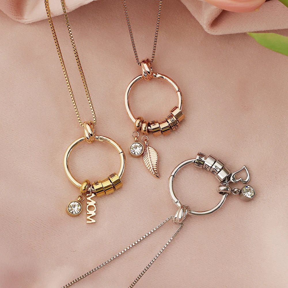 Mother's Day Gift Women Jewelry MOM Necklace Personalized Custom Names Beads With Birthstone Circle leaf Heart Pendants