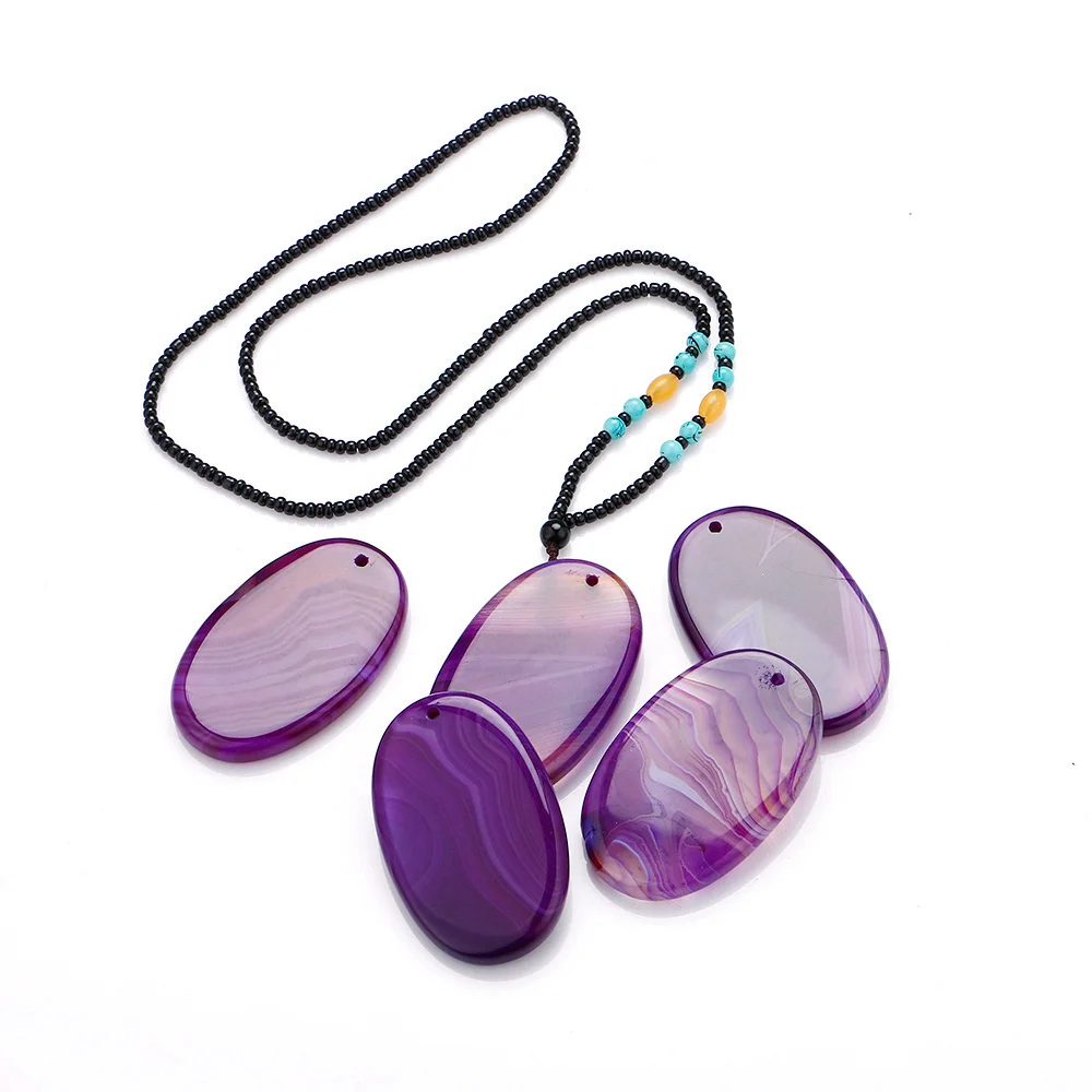 Natural Red Agate Obsidian Bead Long Necklace Oval Pendant 6 Colors New Arrival Charm Fashion Valentine D Gifts Sapphire Ruby