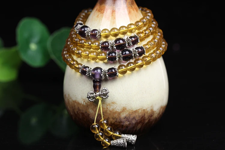 New Fashion 6mm 108pcs Compose Citrine Beaded Bracelet Brazic Prayer Beads Muti-Layer Rosary Mala Bracelet for Mediatation