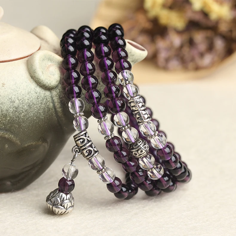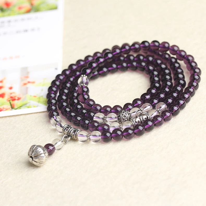 New Fashion 6mm Amethyst Beaded Bracelet Prayer Beads Muti-Layer Rosary Mala Bracelet for Mediatation Can Drop Shipping