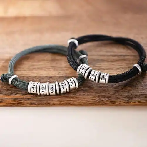 PolishedPlus Customized Bracelet Titanium Steel Braided Rope Men's Custom Letter Name Beaded Personalized Dad Birthday Gift