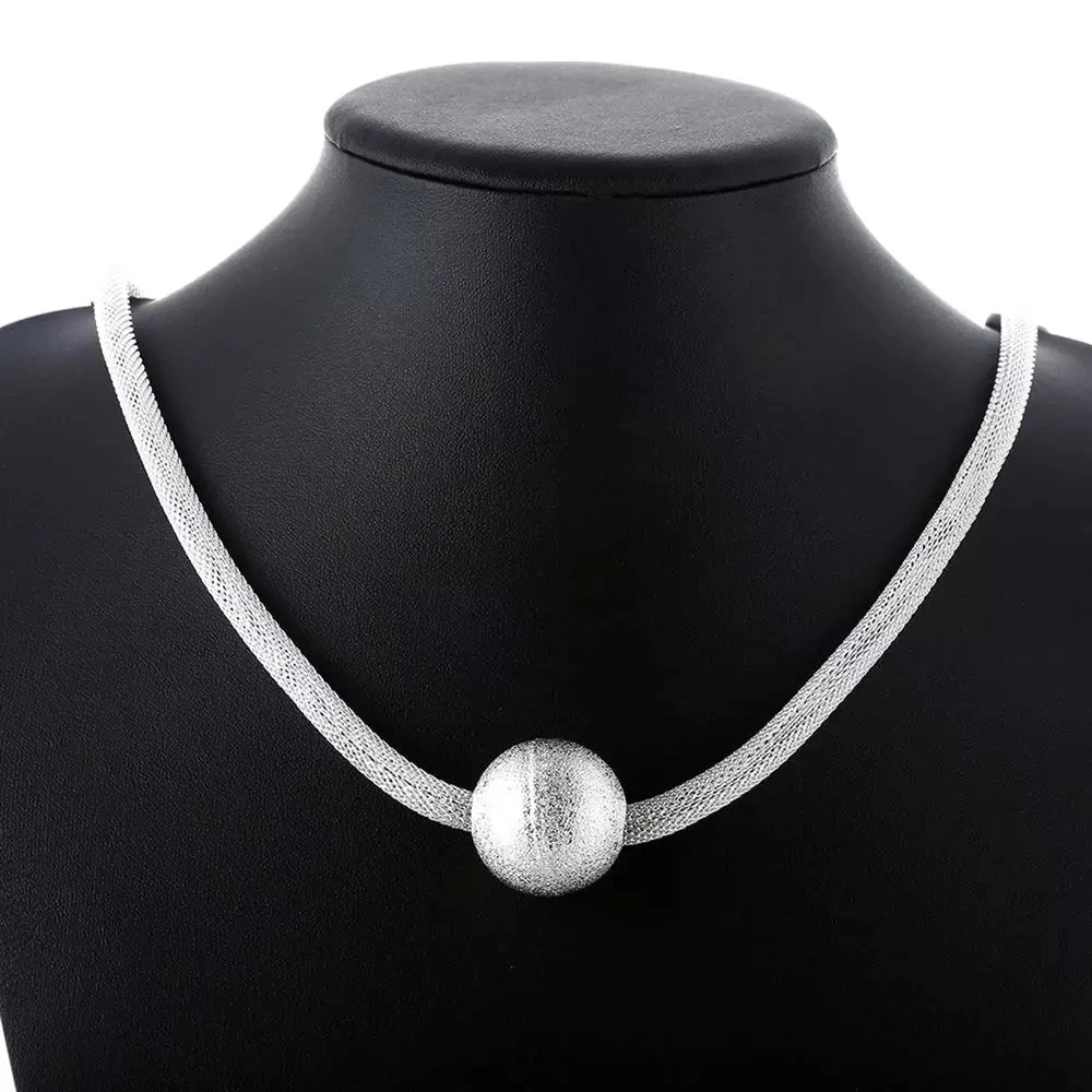 Popular brands 925 Stamped Silver Frosted large beads Pendant Necklace For Women Wedding party Jewelry Christmas gifts