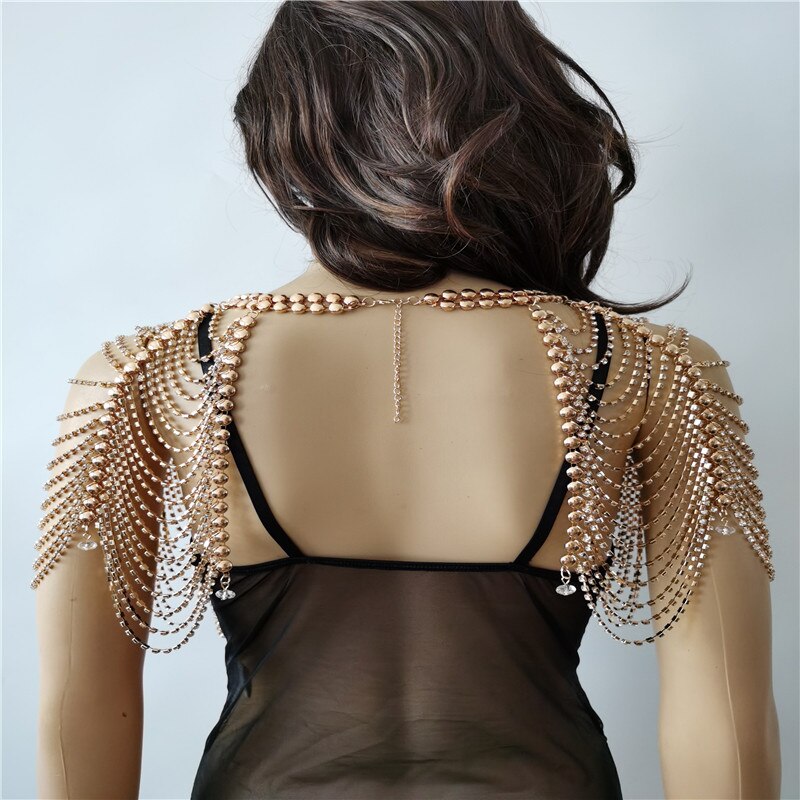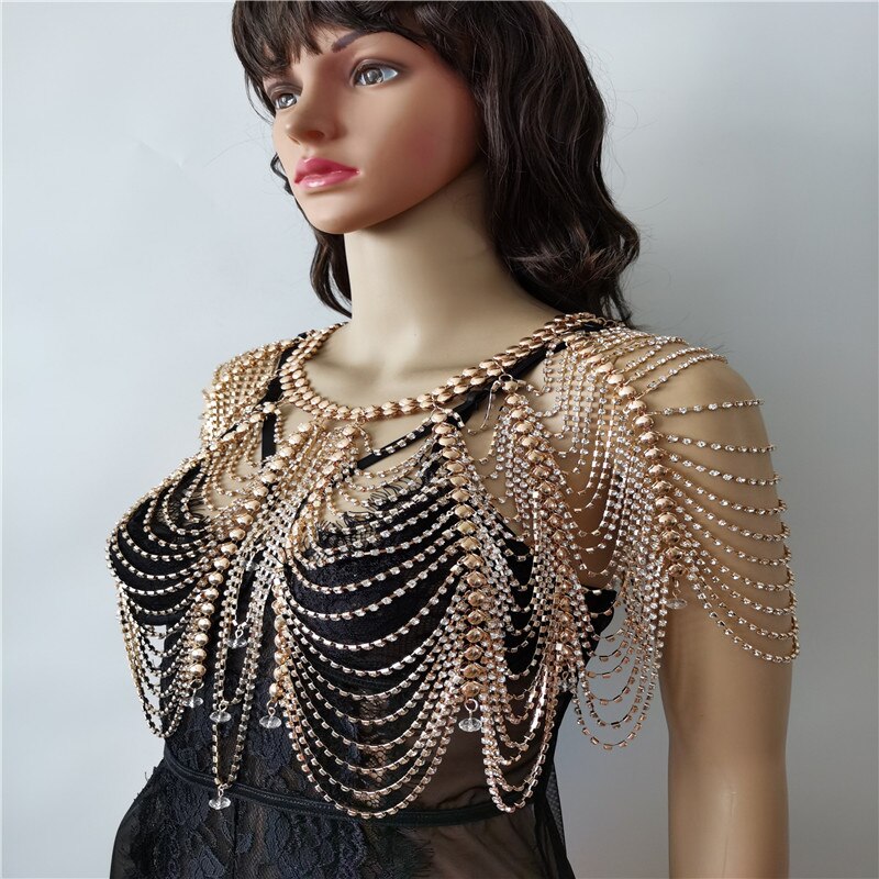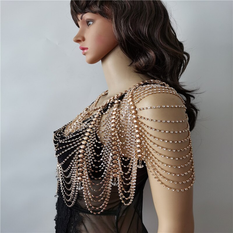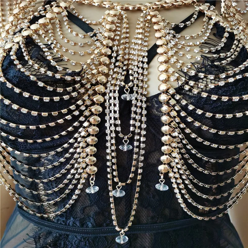 RJRH21 Women Handmade Rhinestone Bra Shoulder Chains Jewelry Bling Crystal Beads Top Costume Jewelry 2 Colors
