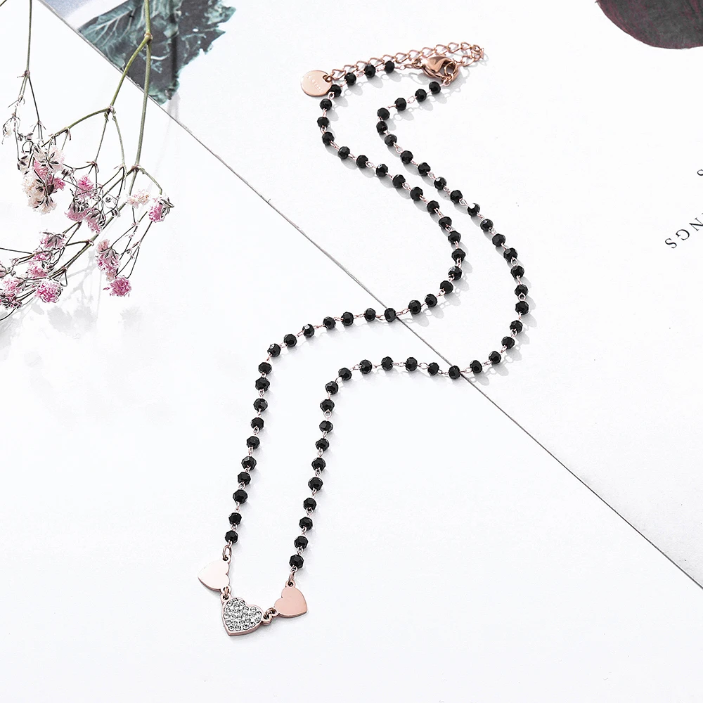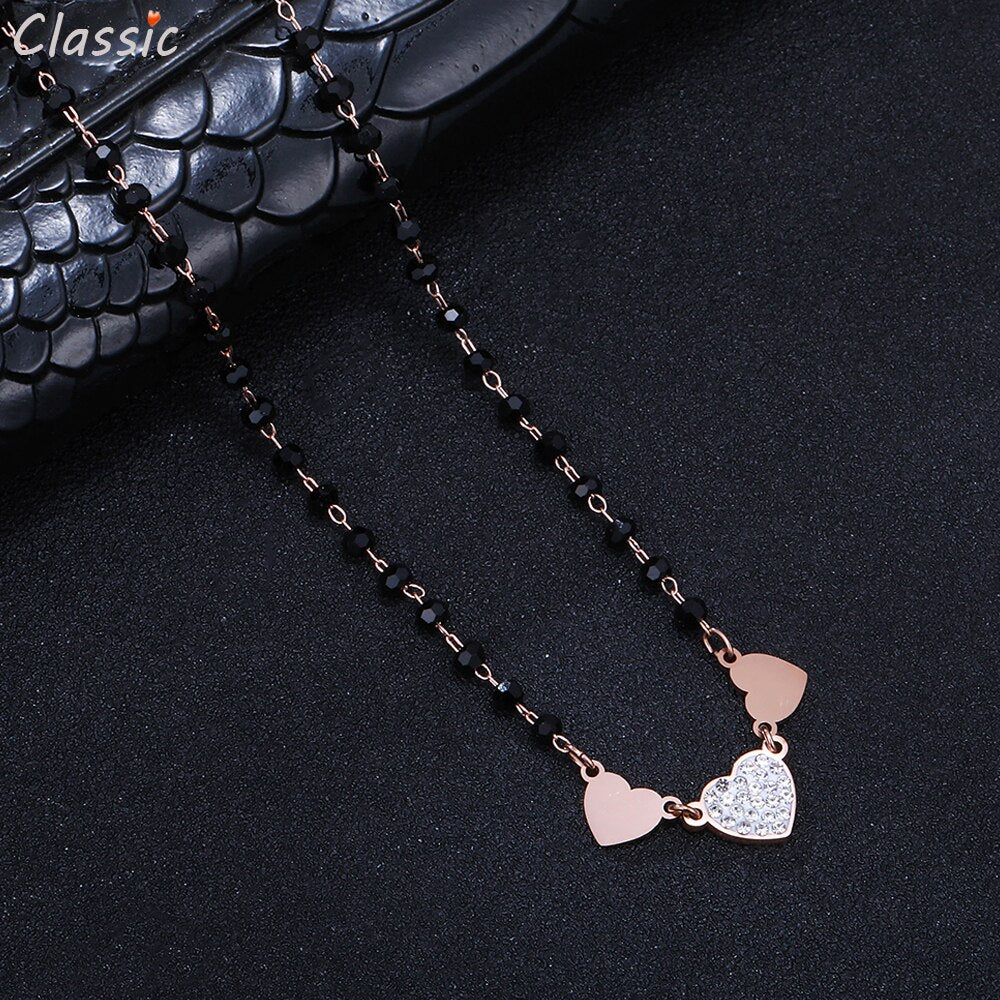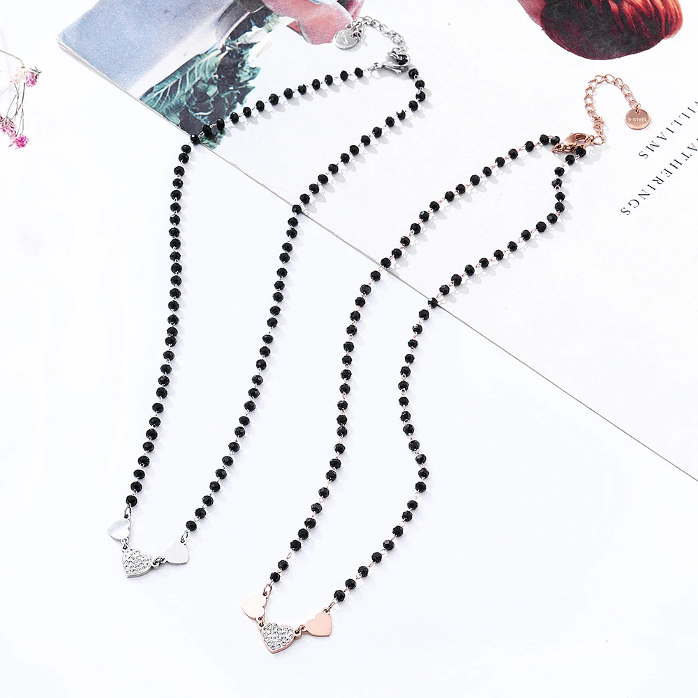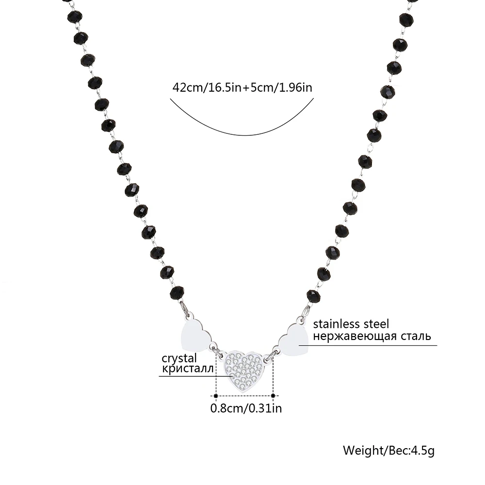 Product points: : Crystal Love Heart Pendent Stainless Steel Necklace