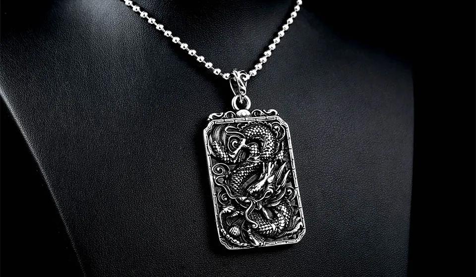 steel soldier Chinese style dragon charm pendant necklace wishes to you stainless steel jewelry