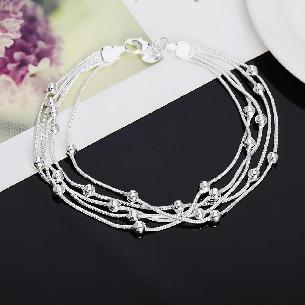 Street 925 sterling silver five line beads Bracelets for woman fine jewelry Wedding party Holiday gifts