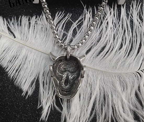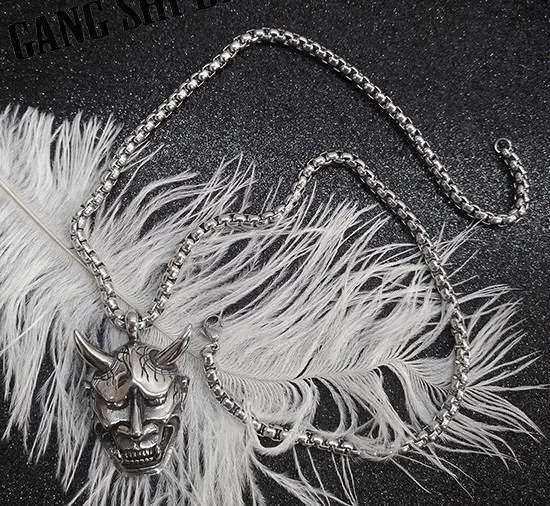 Titanium Steel Evil Oni Noh Hannya Mask Pendant Necklace with 24" Chain