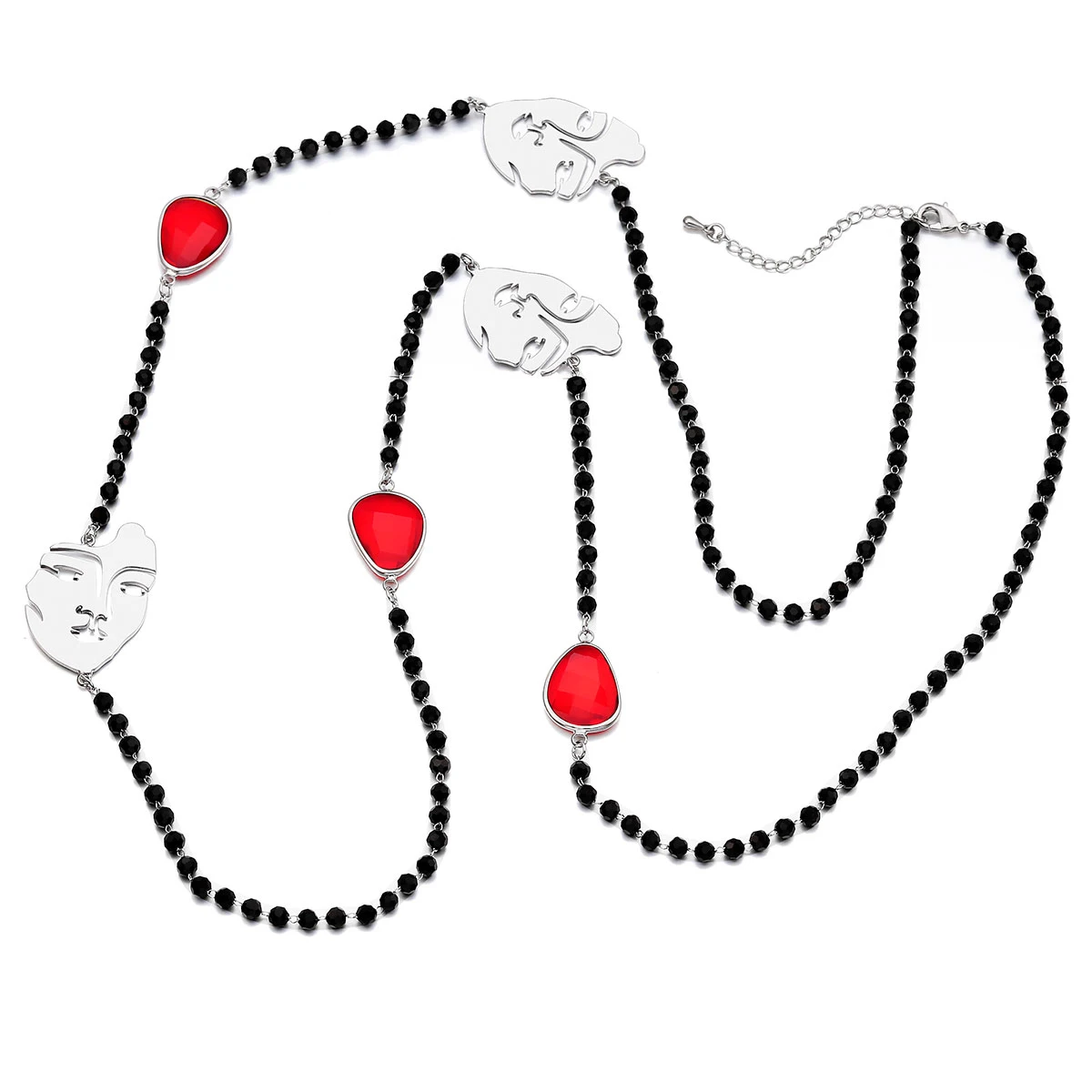 Trendy Lady Face Crystal Beads Long Necklace For Women Custom Colourful Glass Charm Pendants Statement Necklaces Jewelry 2022