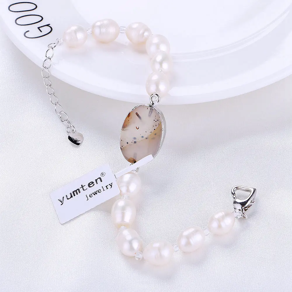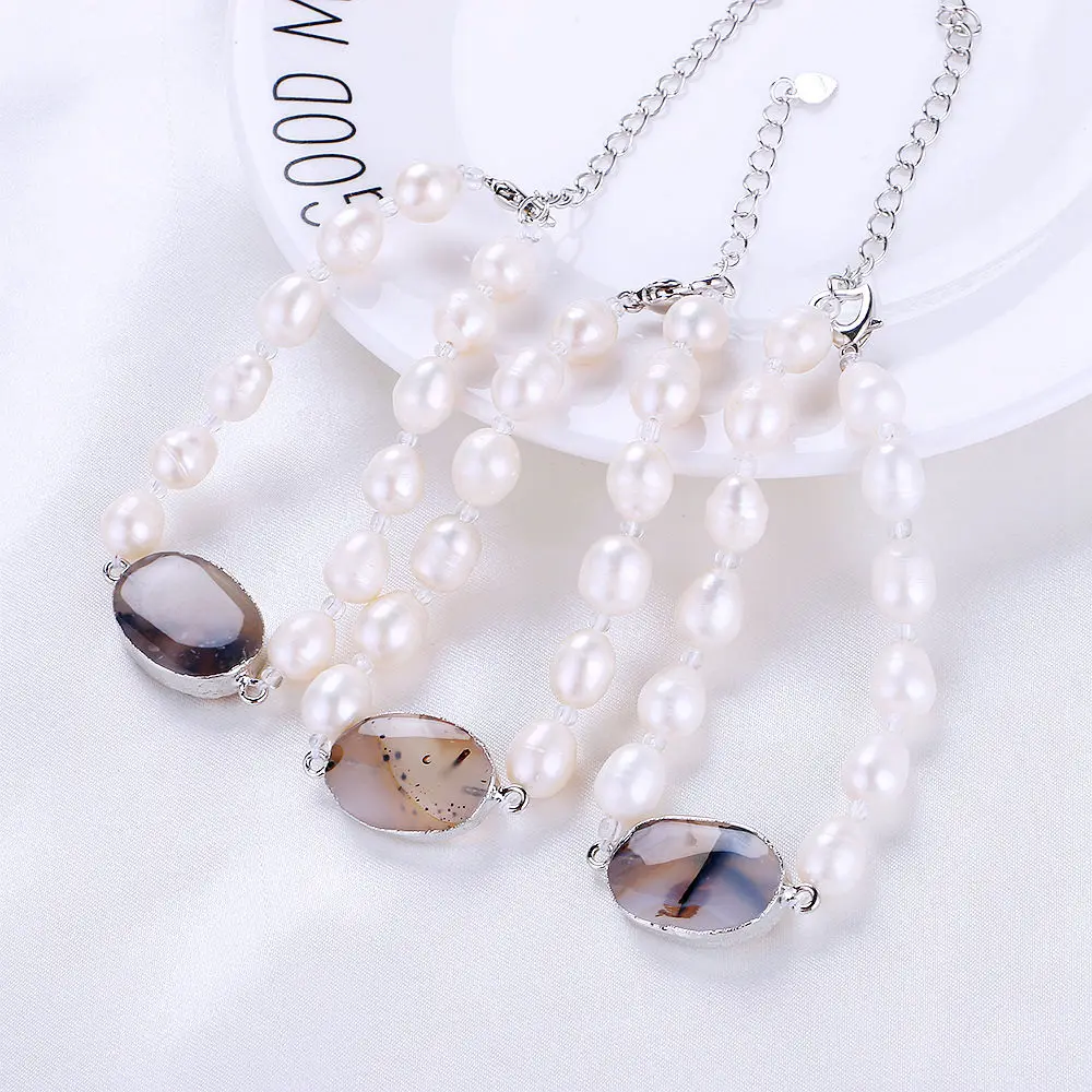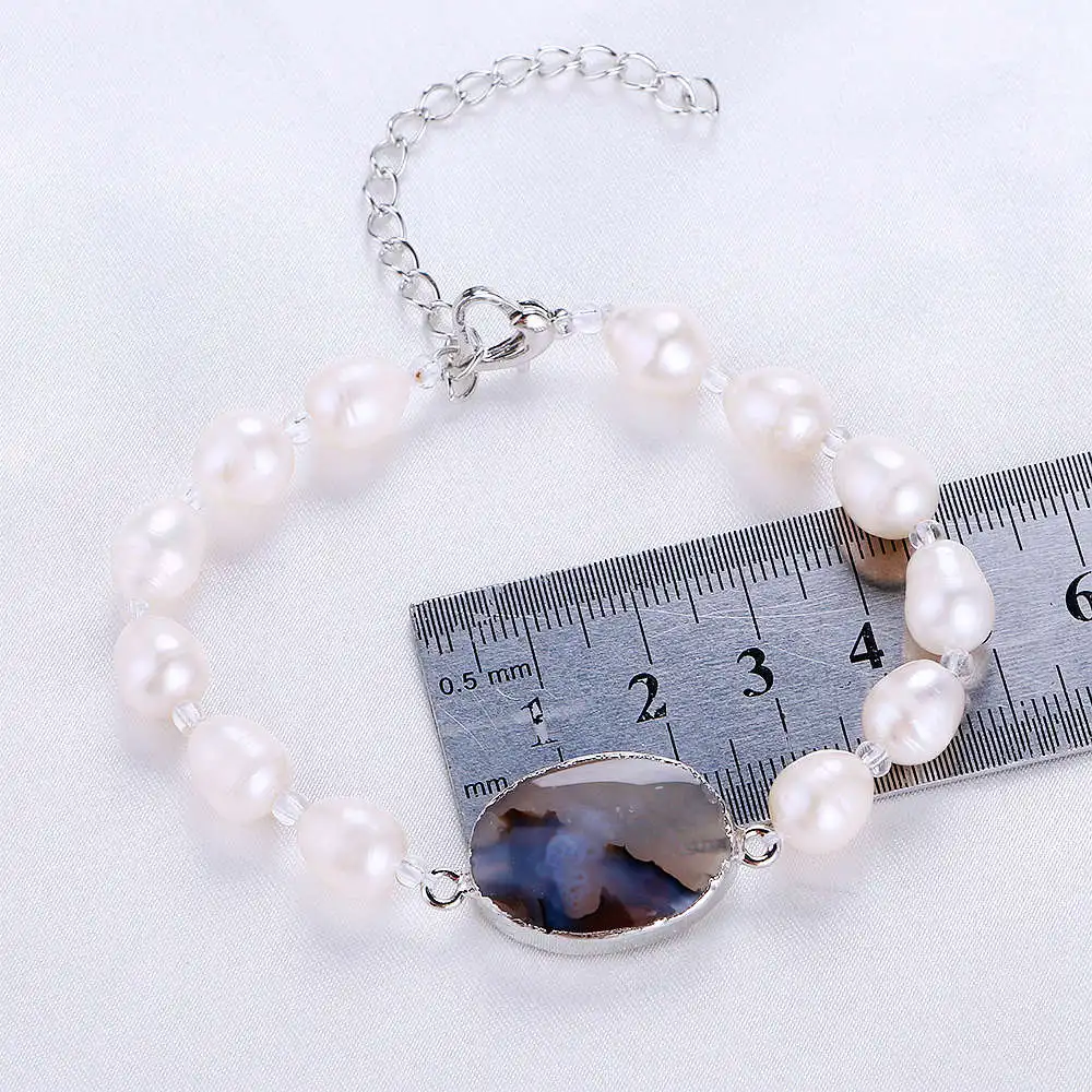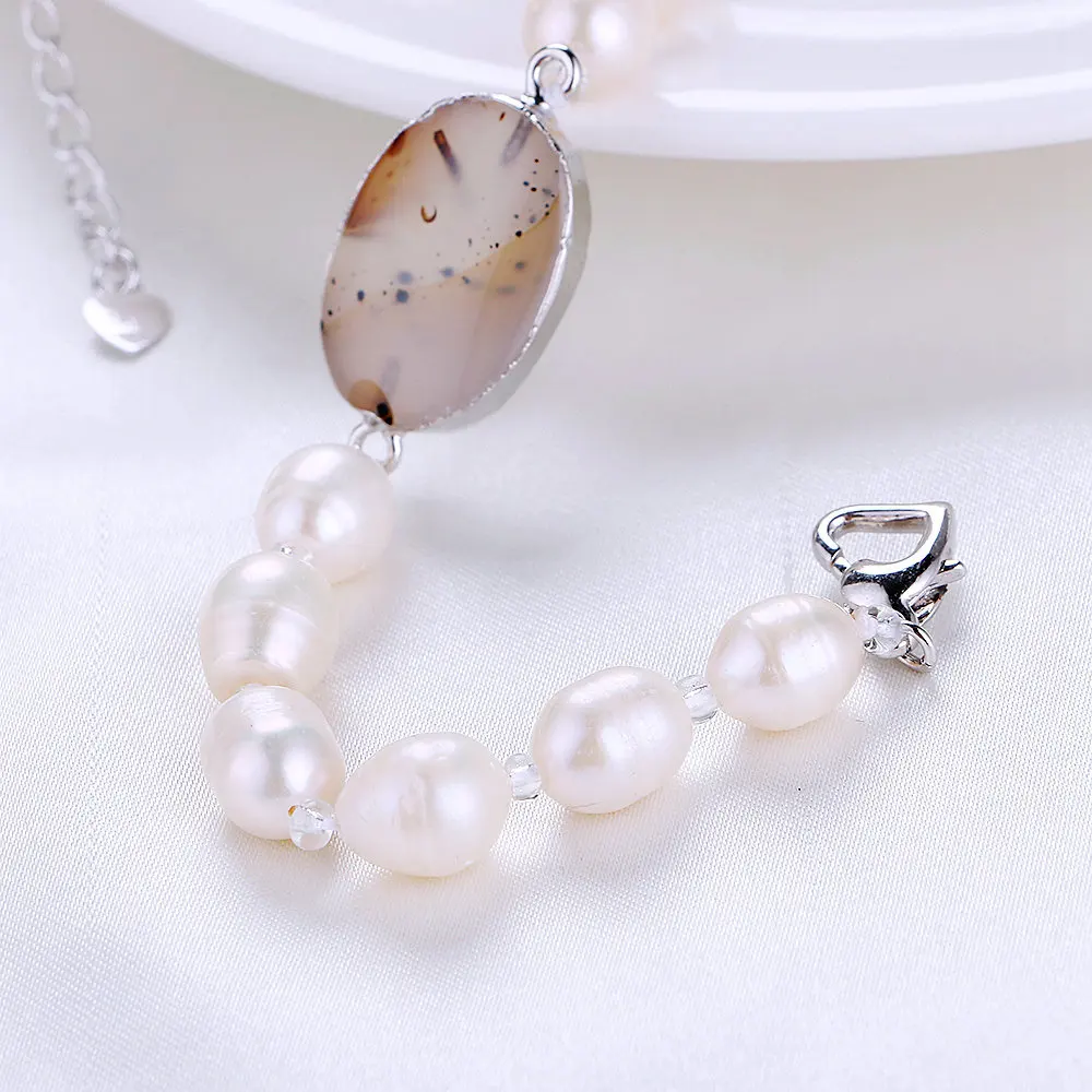 New Fashion Hot Sale Top Natural Pearls Women Bracelet Chalcedony Jewelry Gemstone Beads Rhinestone Gift