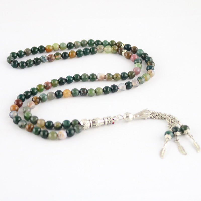 100% Natural Agate Prayer Bracelet Islamic Muslims Tabbih Allah Rosary Indian Agate Bracelet 99 Beads 6-10mm Agate Necklace