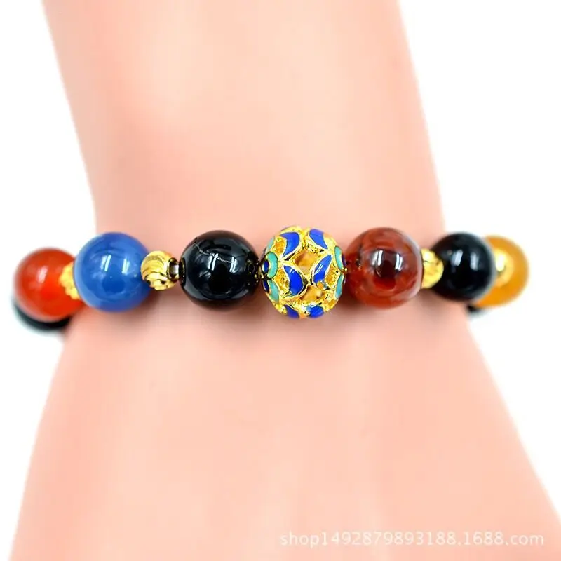 10mm Pure Natural Brazilian Red Agate Sand Golden Beads Bracelet Red Black Agate Couple Beads Crystal Bracelet Men Women Lucky