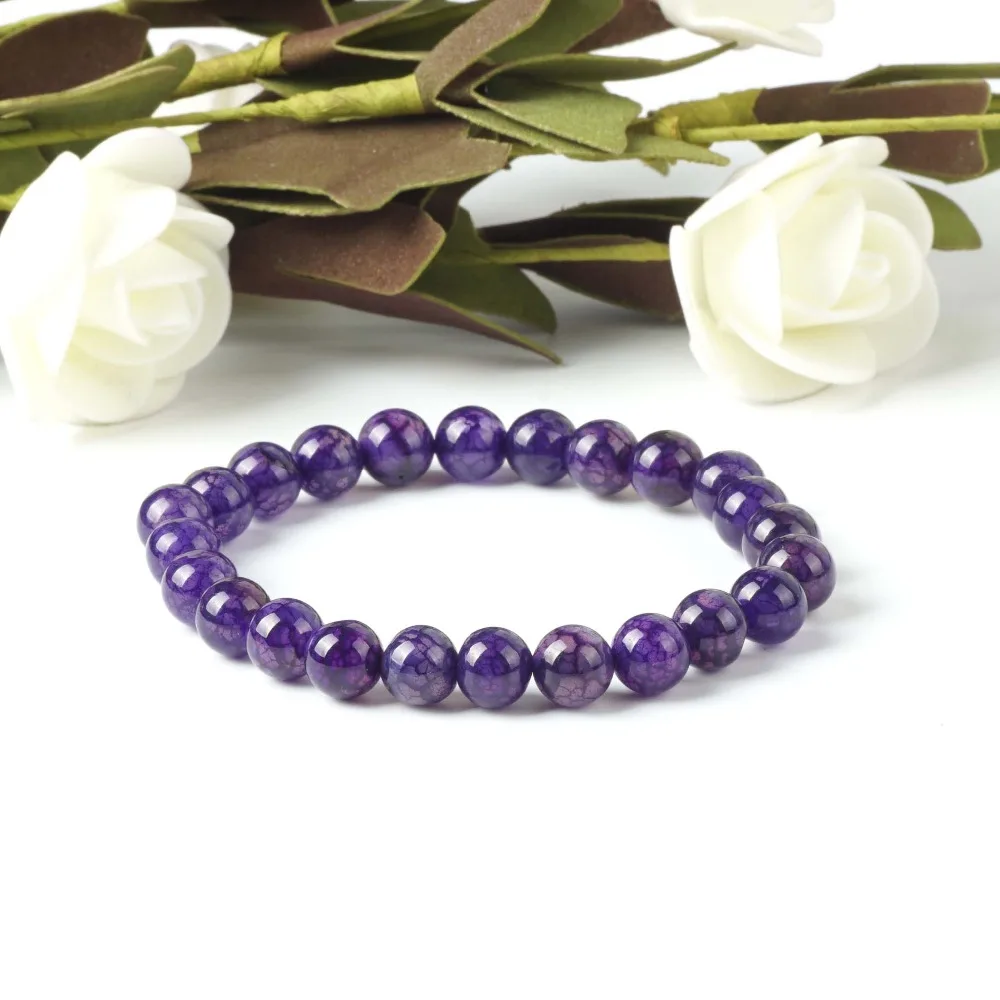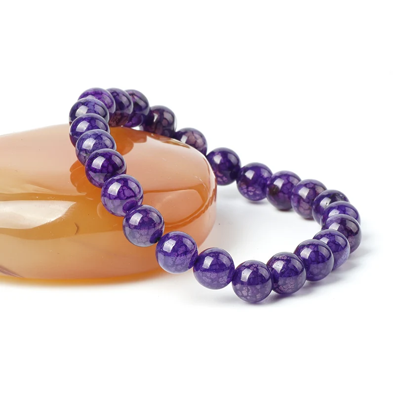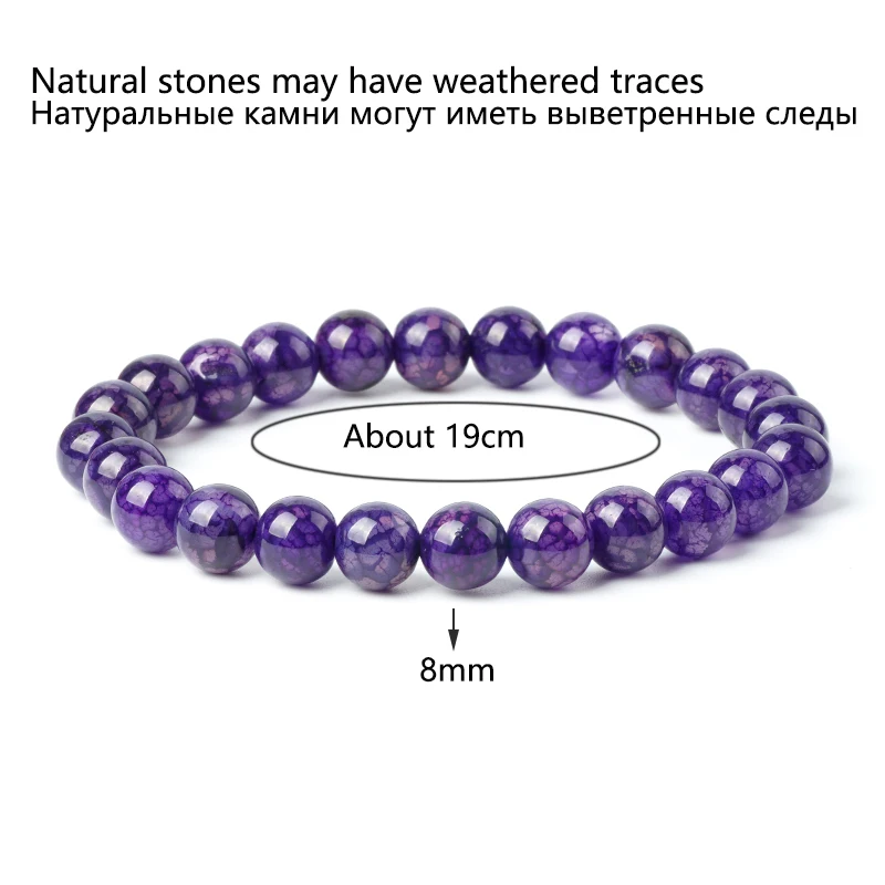 2020 New Natural Crackle Bracelet Purple Agate Stone Bracelets for Women 8mm Loose Onyx Gemstone Yoga Bracelets Fashion Jewelry