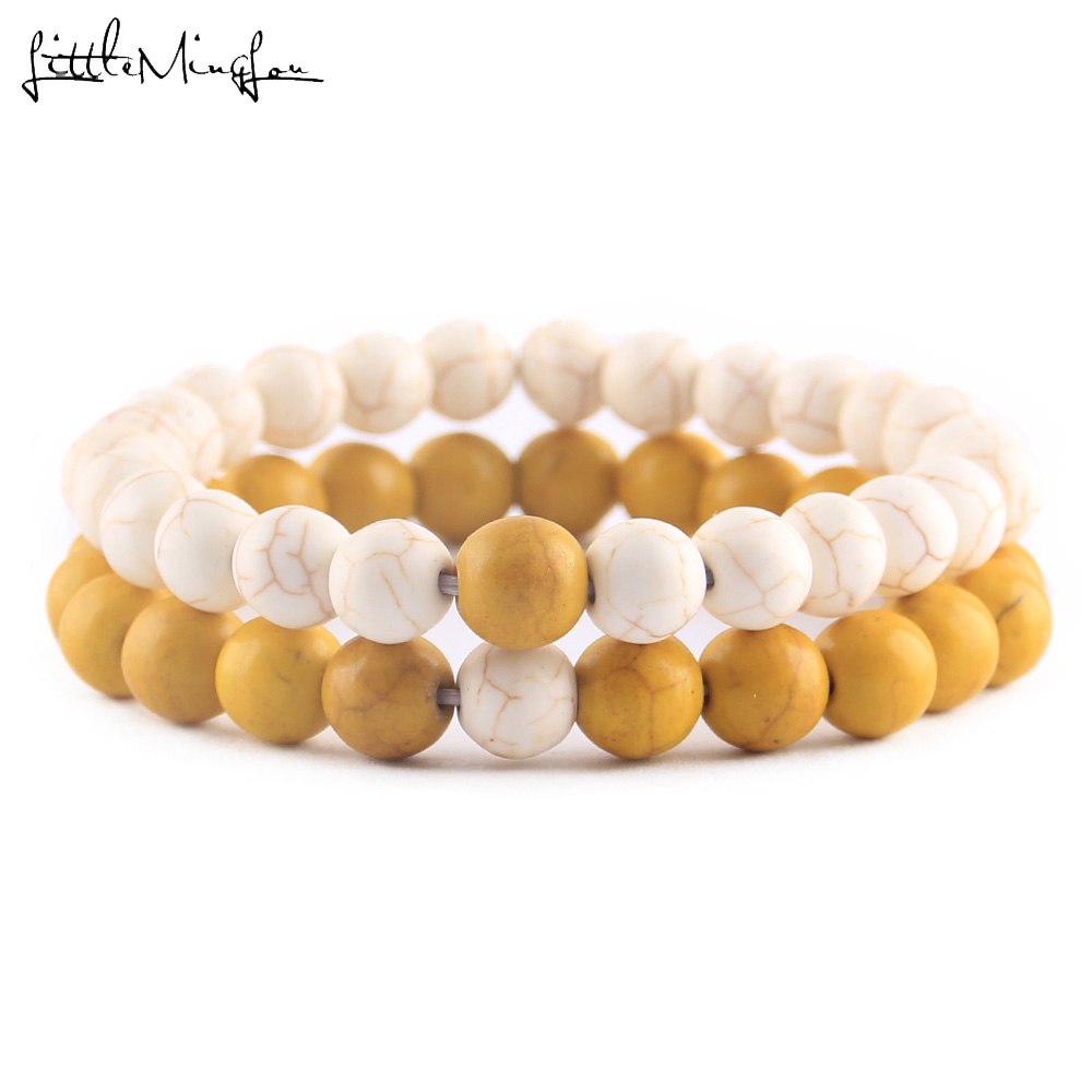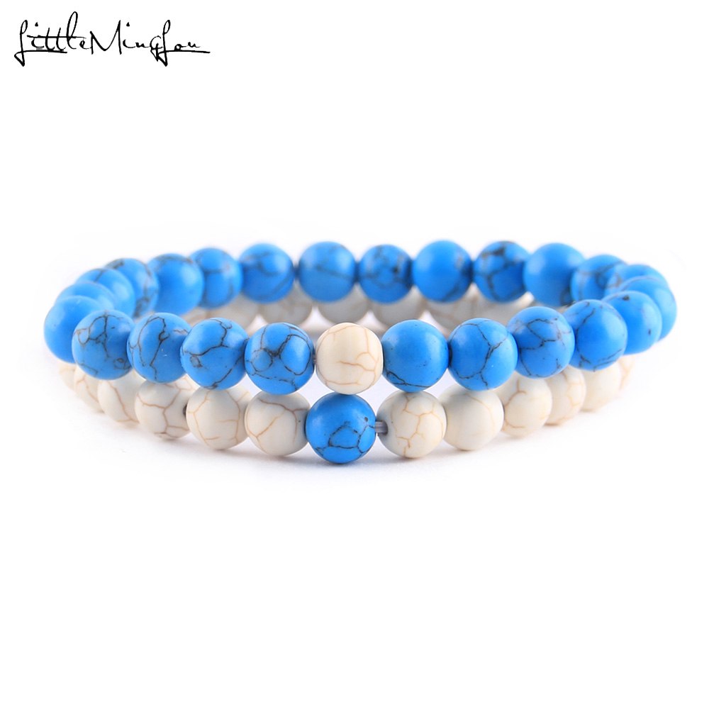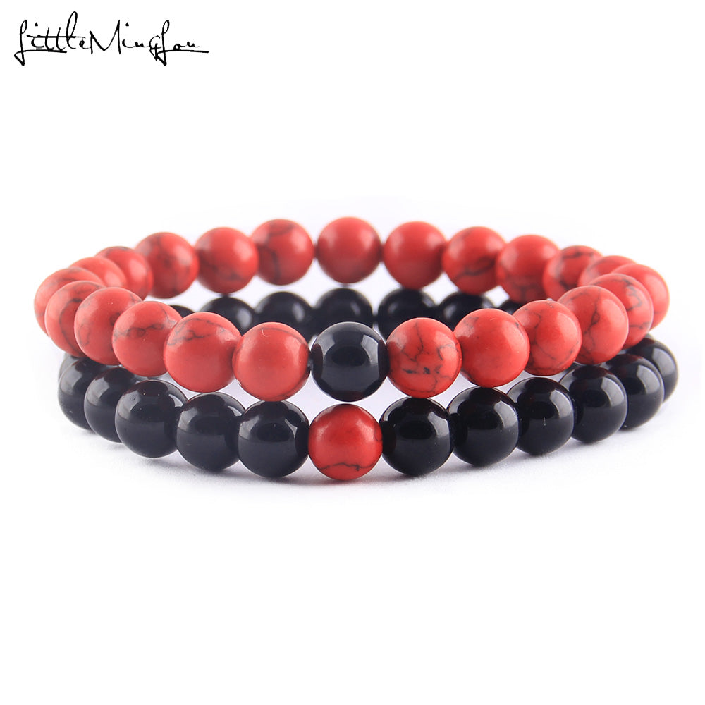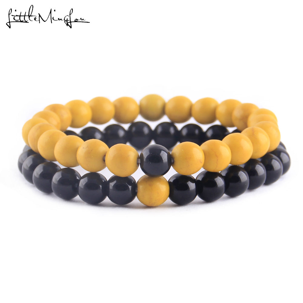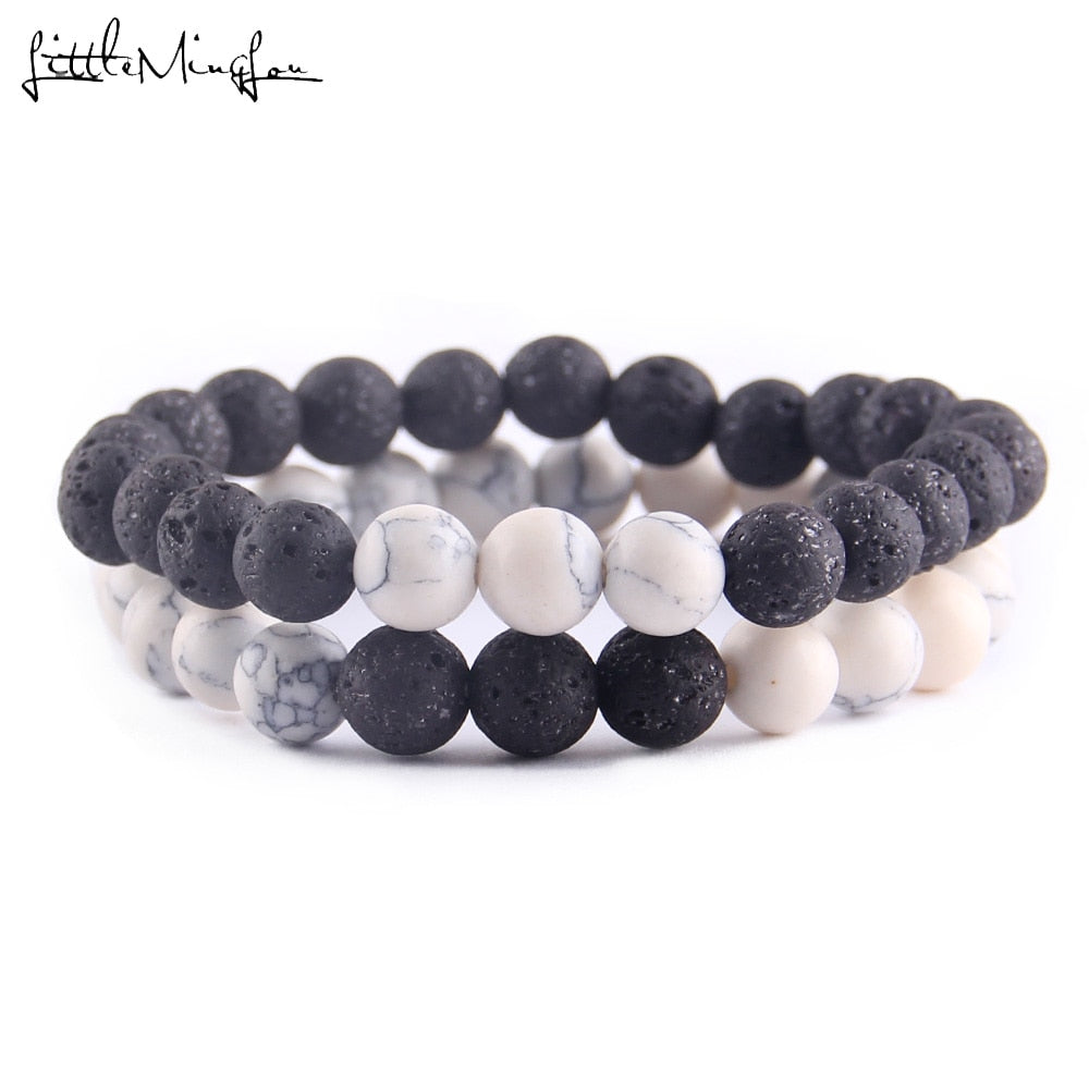 2Pcs/Set Natural stone beads Couple Lovers best friend bracelet for women yoga Yin Yang Beaded Bracelets Bangles gift for men