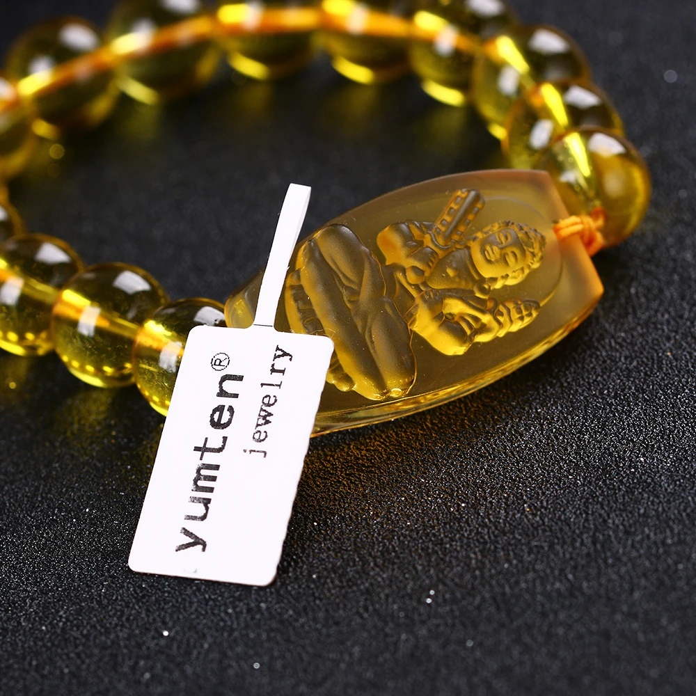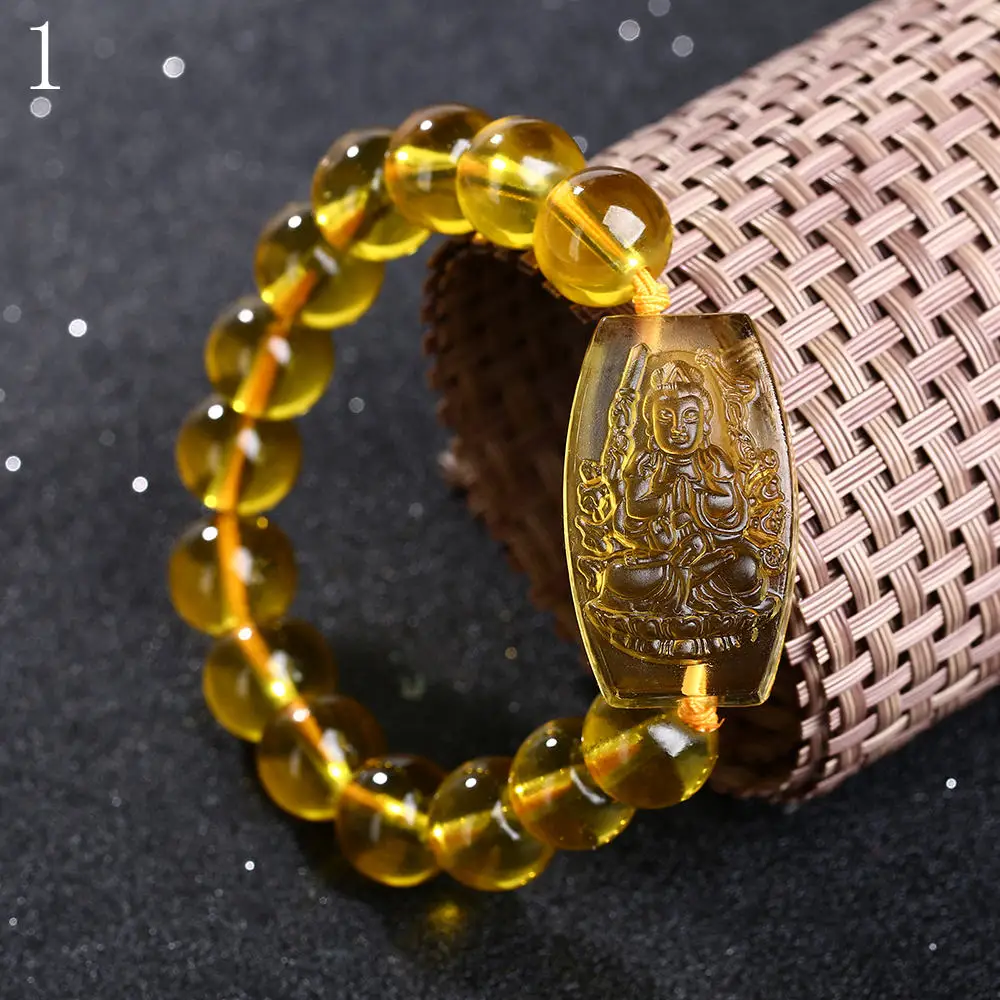 3A Topaz Crystal yellow Buddha Beads Bangles & Bracelets Handmade Jewelry Ethnic Bracelet Reiki for Women Men Carving guard 2020