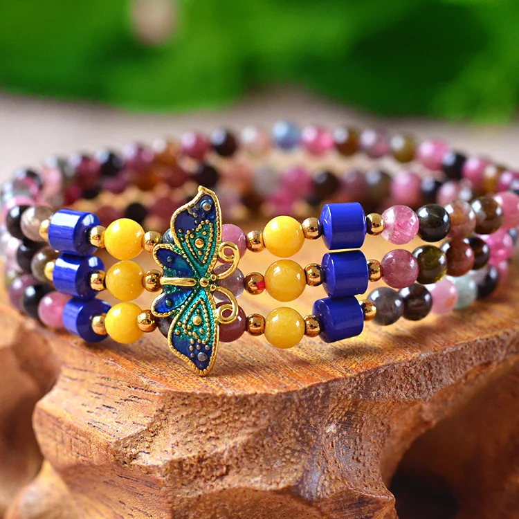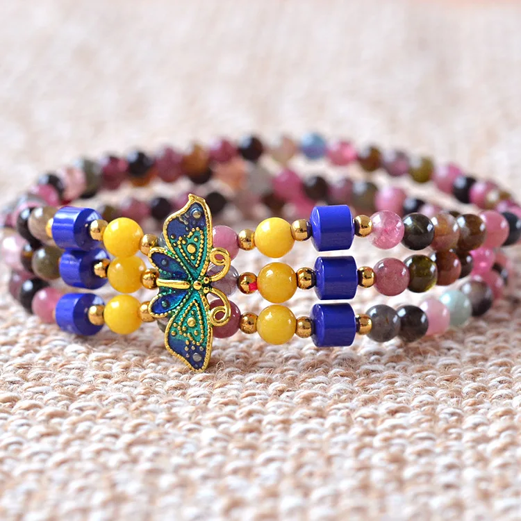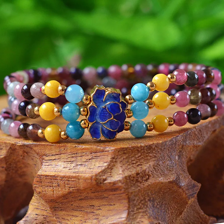 4mm Natural tourmaline Round beads Bracelet jewelry Fine Beaded Bracelets Jewelry For women Gift with certificate Drop Shipping