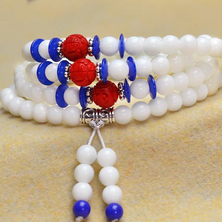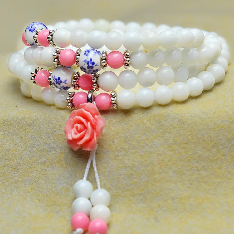 6mm Natural White Tridacna gemstone beads Tibetan Buddhist 108pcs Prayer Beads Gourd mala Prayer Bracelet for Meditation