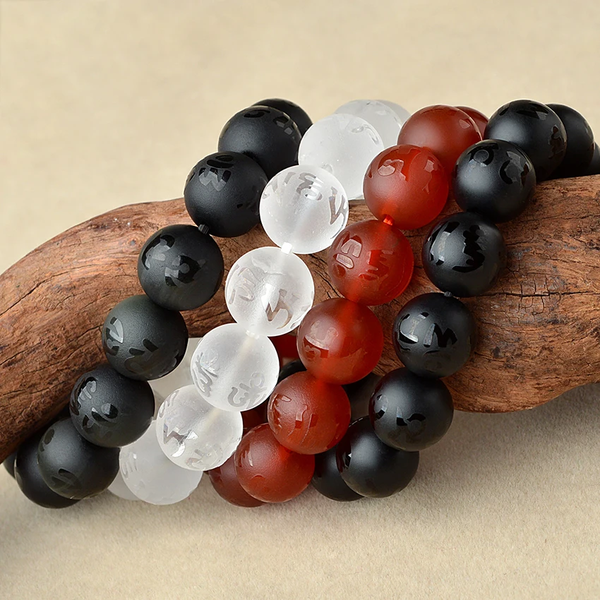 8-12mm Obsidian Natural Stone Bracelet Black Agate Clear Quartz Crystal Bracelet Red Agate Bracelets For Women Six Days Of True