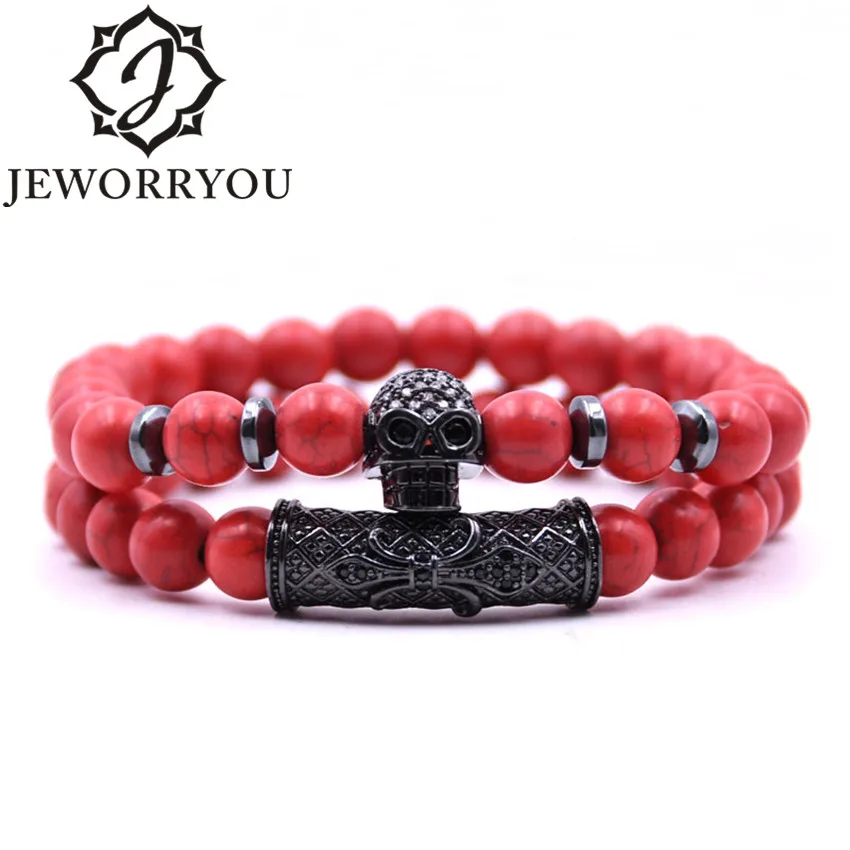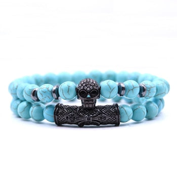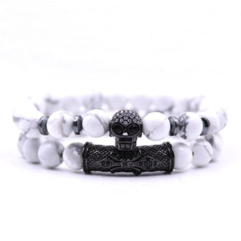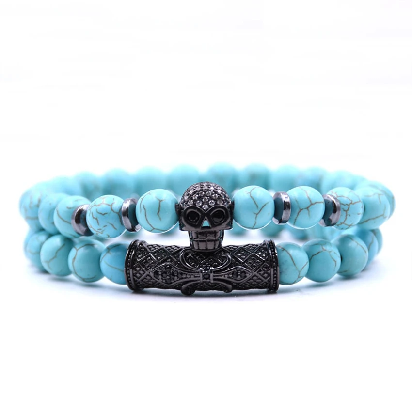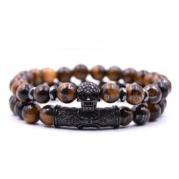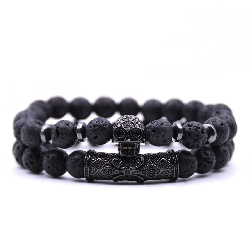 8mm 2 piece/set Rock Skull Bracelet Homme Tiger Eye Best Friend Bracelet Set Charms Hop Lava Stone Bracelet Men