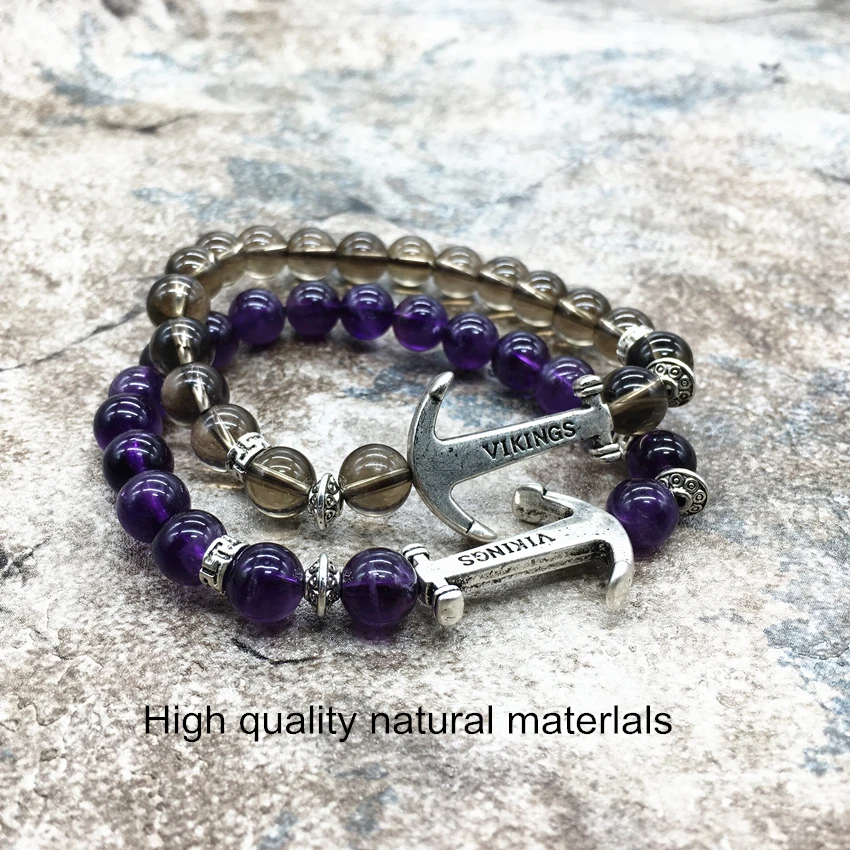 8mm Anker Anchor Bracelet Natural Amethyst Bracelets For Women Femme Lava Stone Bracelet Stone Pierre Naturelle